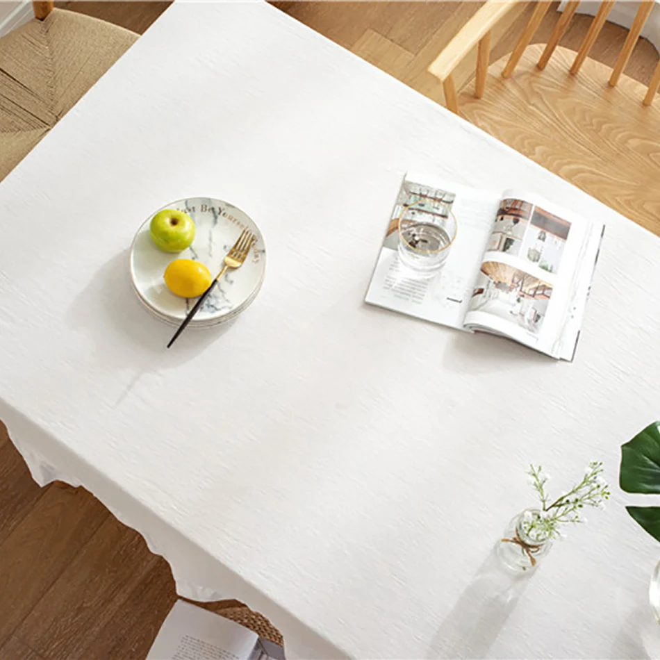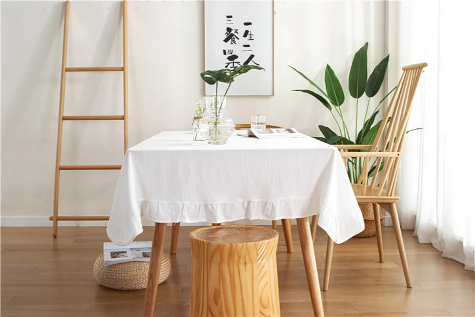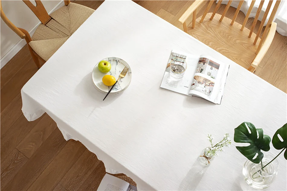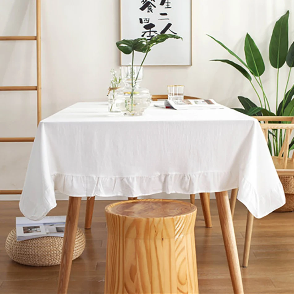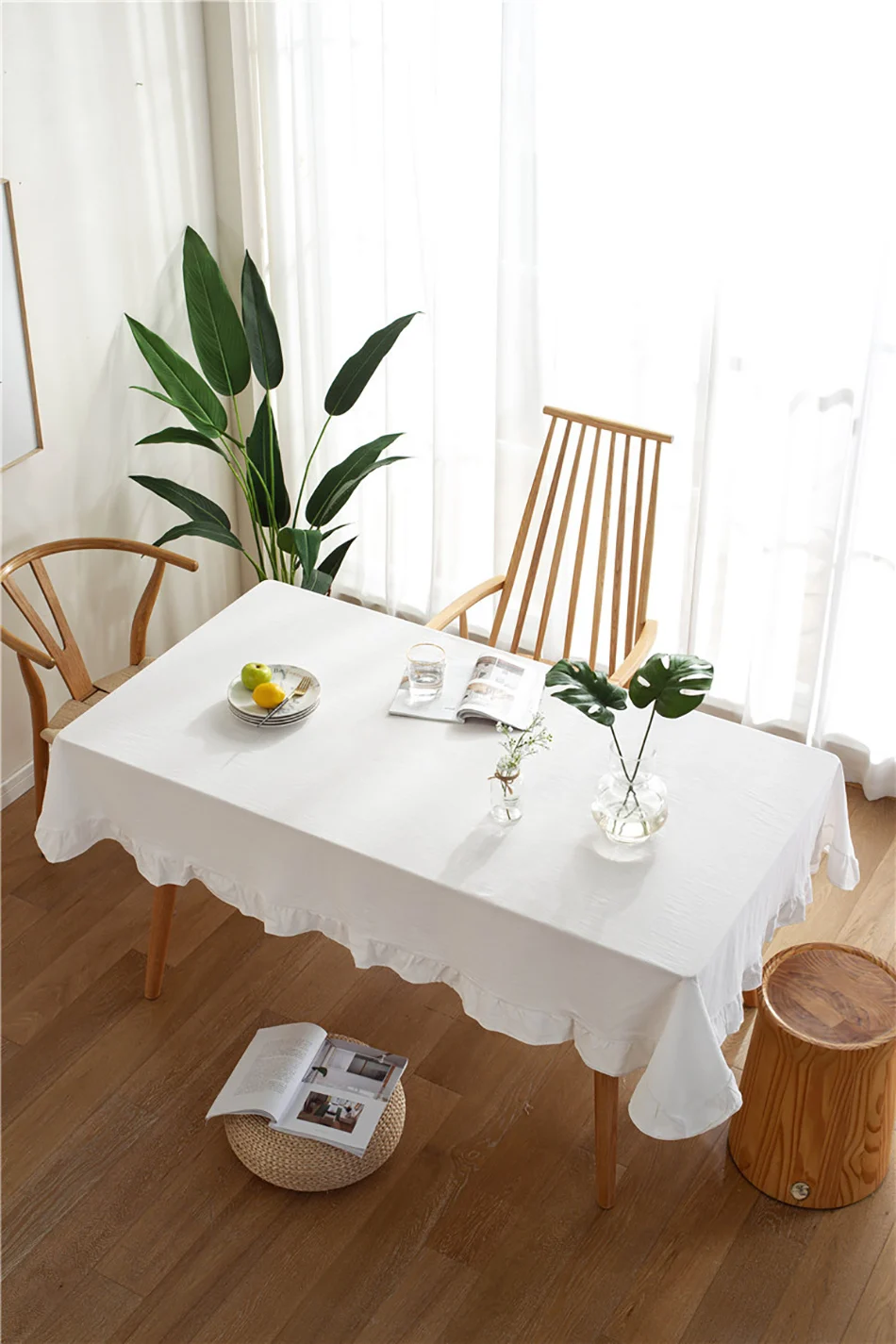 Прямоугольная скатерть, белая хлопковая скатерть для журнального столика, скатерть с оборками, украшение для свадьбы, вечеринки, гостиной, покрывало, коврик