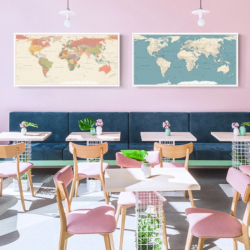 Карта мира, холст, живопись, печать, большой размер, розовая, синяя, бежевая карта мира, постер, Rorm декор, современное настенное искусство, картина, украшение