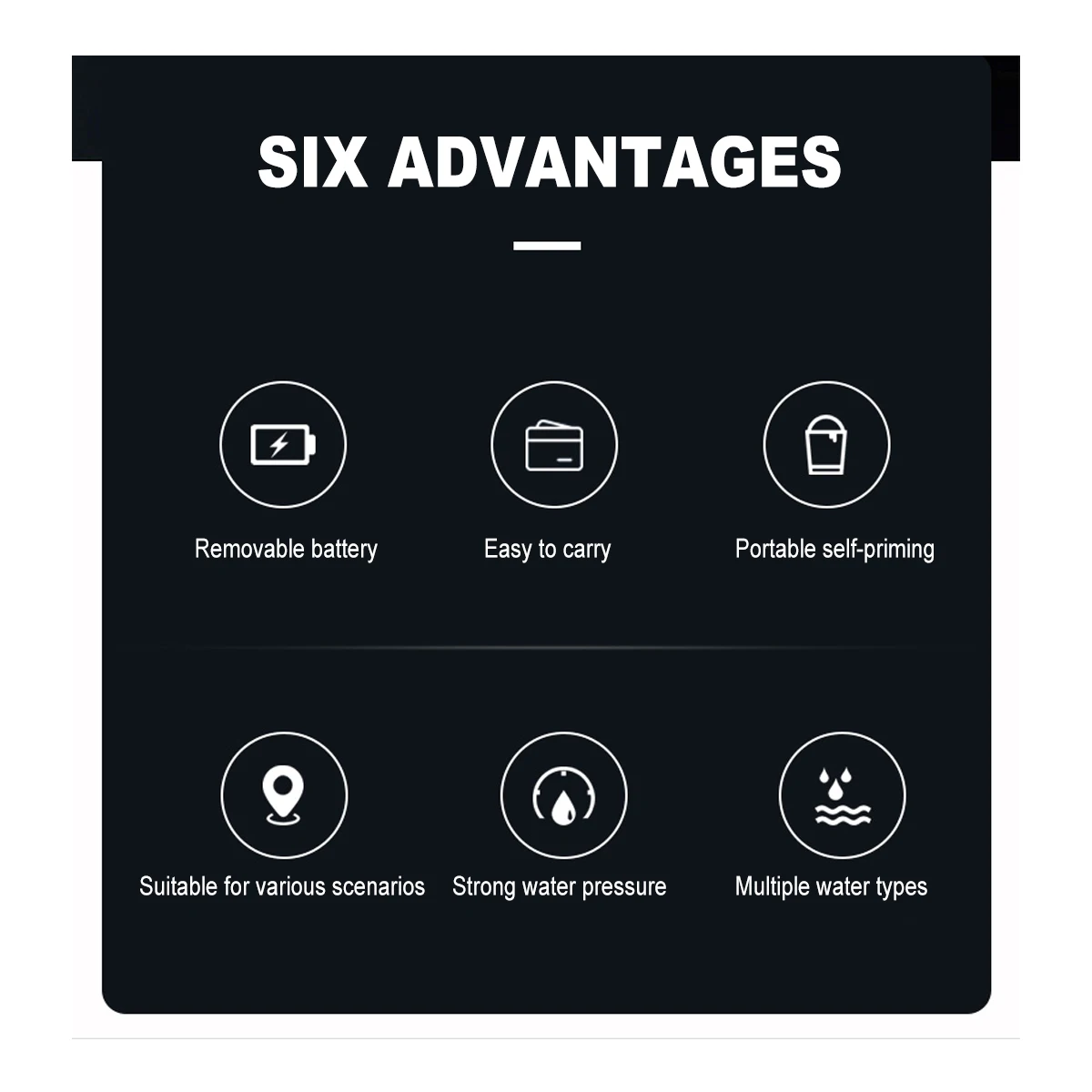 Особенности:-Когда вы путешествуете на открытом воздухе, просто положите водопровод в rivulet, ведро или любой источник воды, чтобы начать мытье вашего автомобиля.-Мойте машину в любое время в любом месте-Беспроводной дизайн, Чистка в любое время и в любом месте.-Высокопроизводительная литиевая батарея, попрощайтесь с проблемами при помощи линии сопротивления.