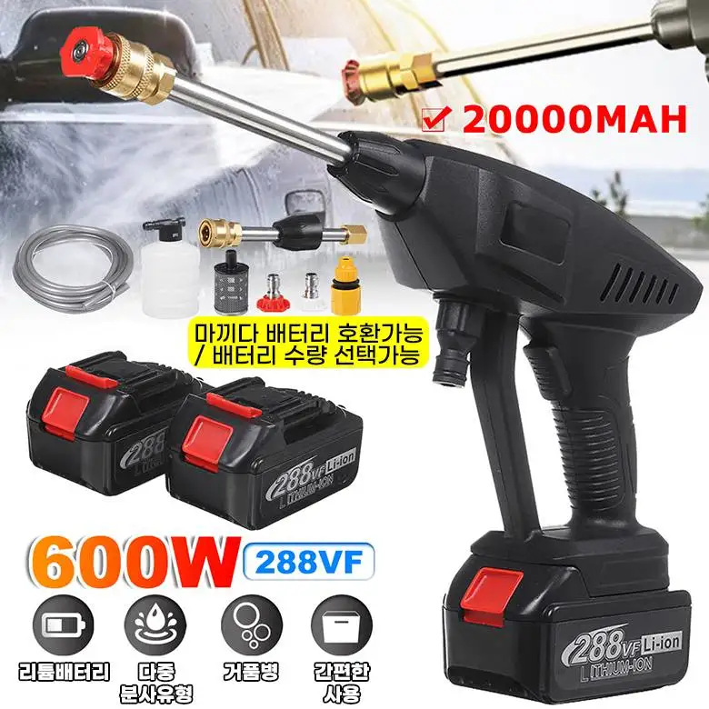 288VF 20000 мАч, 600 Вт Электрическая аккумуляторная высокое Давление машина для мытья автомобиля, водяная спрей-очиститель стиральная машина Перезаряжаемые пистолет для монтажной пены