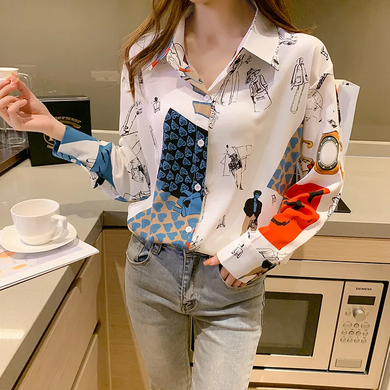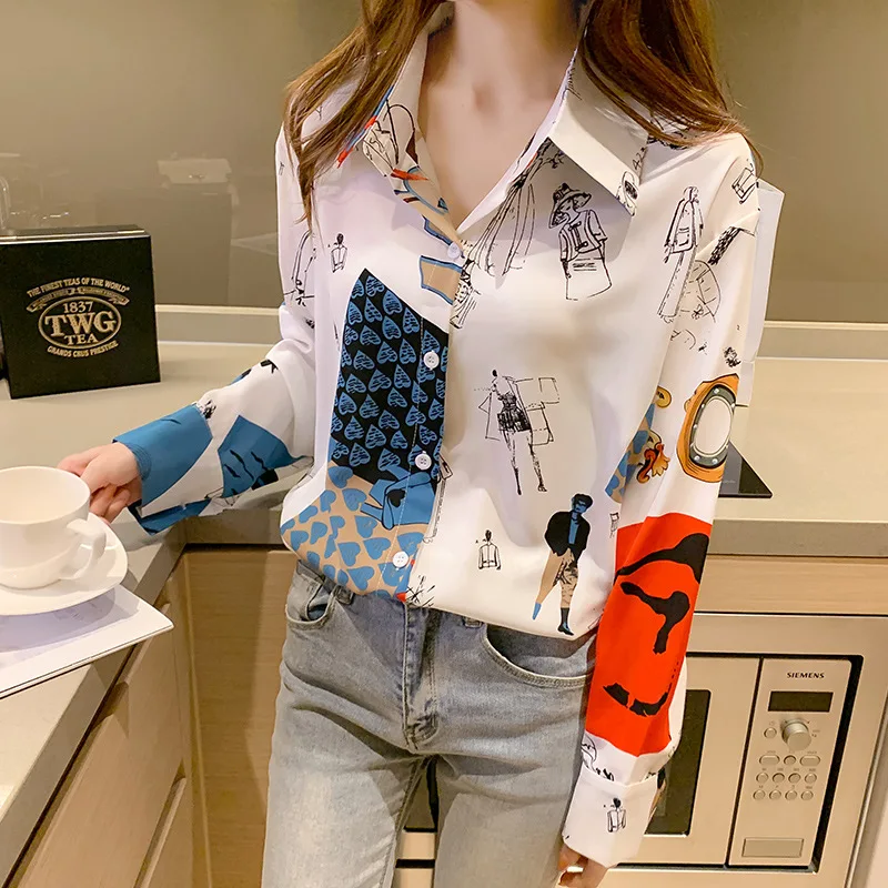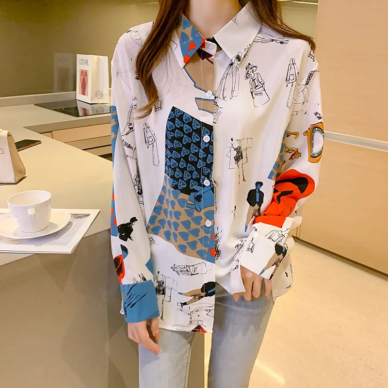 2021 Новая модная Темпераментная Женская рубашка с принтом корейски...