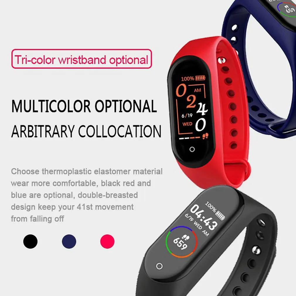 Особенности:1. Изготовлен из высококачественного, он прочный и имеет длительный срок службы.2. Мониторинг здоровья: подсчет шагов упражнений, умный счетчик шагов, Мониторинг Артериального давления, мониторинг сердечного ритма, анализ сна.3. Многофункциональность: информационное нажатие, вызов, умное напоминание, подсчет шагов, социальные развлечения. Описание:1. Умный Браслет M4, измеритель упражнений, умный Шагомер, Мониторинг Артериального Давления пульса, зарядное устройство/зарядное устройство. Удобные и стильные.Характеристики:Материал: силиконЦвет: черный, красный, синийРазмер экрана: 1 дюймТип: Линейная зарядка, базовая зарядкаПосылка включает в себя:1 Набор умных часовПримечания:Пожалуйста, учитывайте погрешность 0-2 мм из-за ручного измерения, спасибо за понимание.Из-за разницы между различными мониторами изображение может не отражать фактический цвет изделия. Пожалуйста, поймите, спасибо!