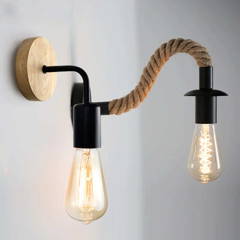Винтажная пеньковая веревка, светодиодная деревянная настенная лампа E27, комнатный светильник в стиле лофт, комнатный коридор, промышленное бра, прикроватное освещение, 110 В, 220 В