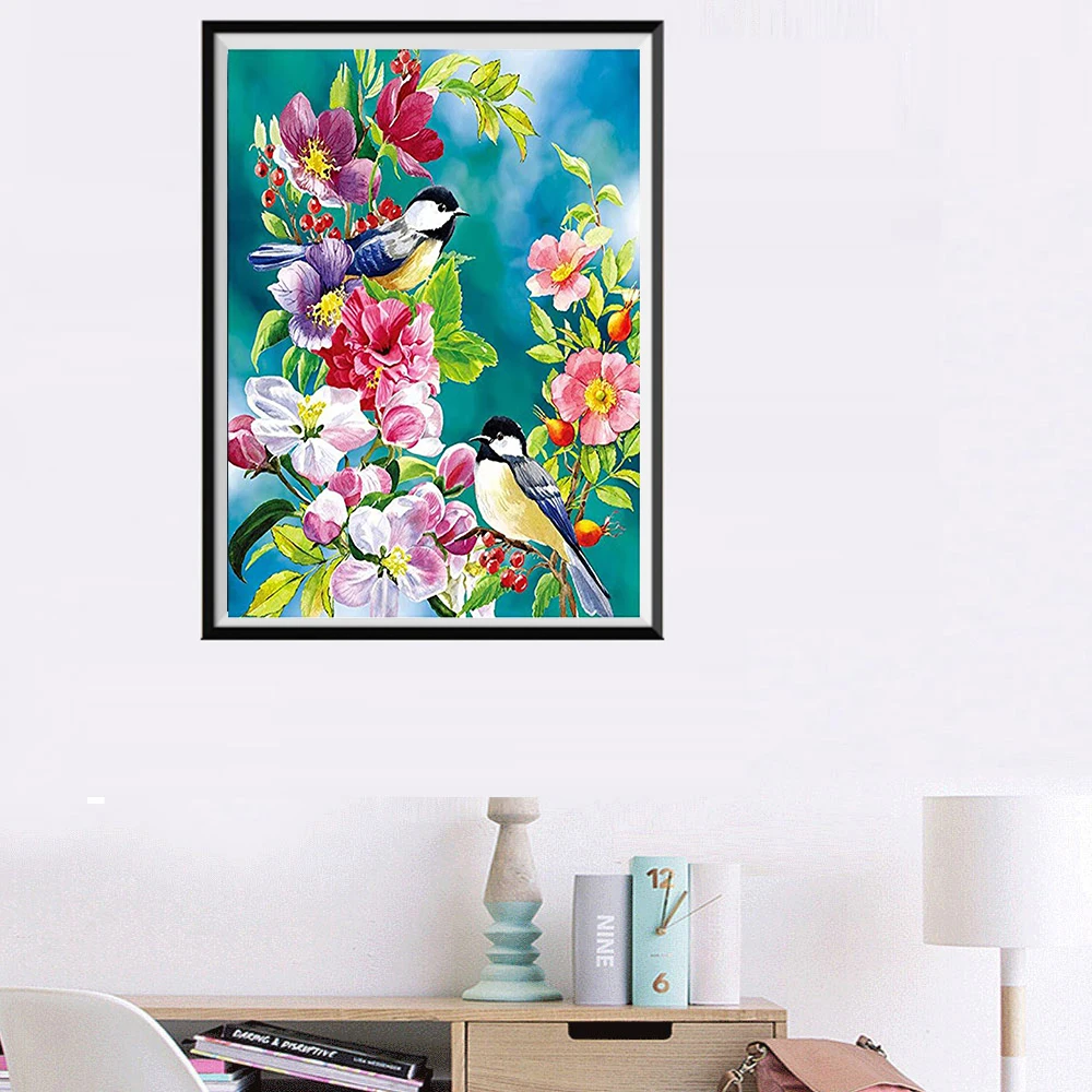 Алмазная 5D картина, полная круглая вышивка с птицами и цветами, На...