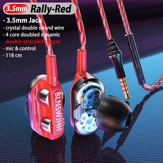 Двойной динамик, проводные наушники, гарнитура для iPhone, Xiaomi, ...