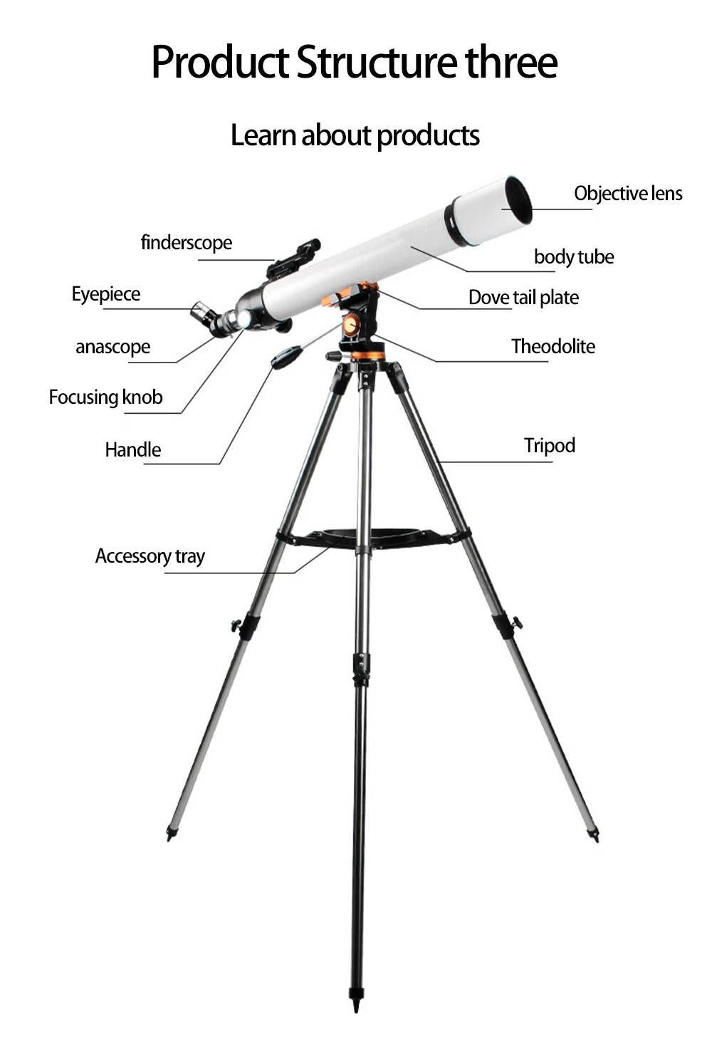 1. Высококачественный алюминиевый сплав: вам не придется беспокоиться о поломке2. Красивый внешний вид больше подходит для стимулирования интереса детей3. Один год гарантии4. У нас есть видео установки, легко установить5. Бесплатный держатель Мобильный телефон, так что вы можете использовать свой мобильный телефон, чтобы записать красоту звезд