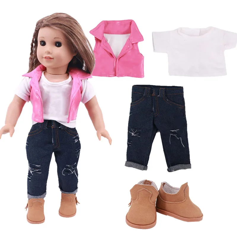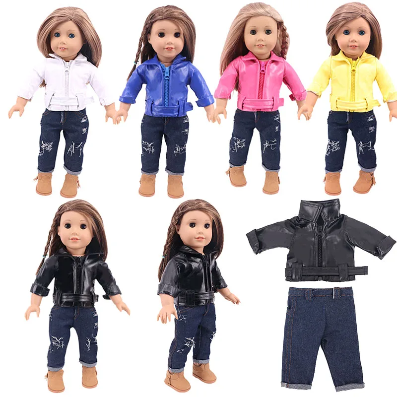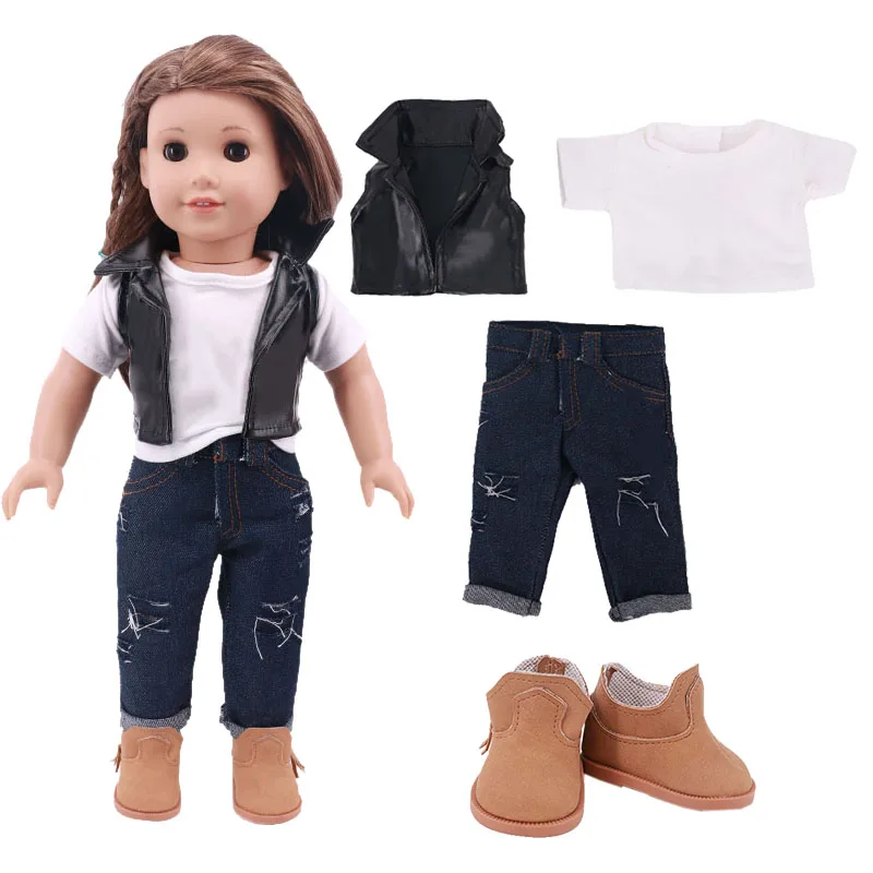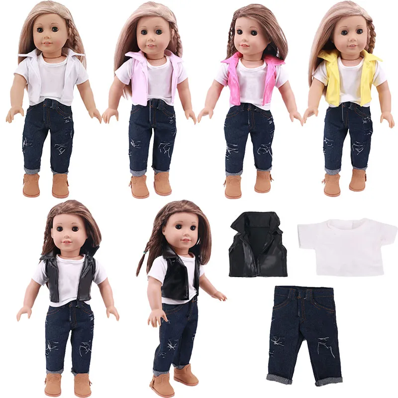 Кожаный костюм, жилет + футболки + юбка + леггинсы для 18-дюймовых американских и 43 см малышей, кукольная обувь нового поколения, аксессуары для одежды, игрушки