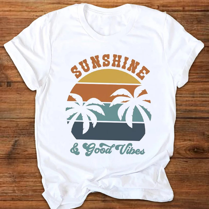 Женская Винтажная футболка с коротким рукавом, белая Повседневная Р...