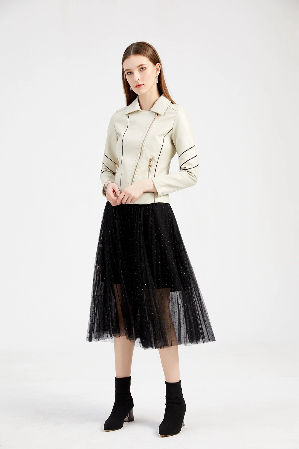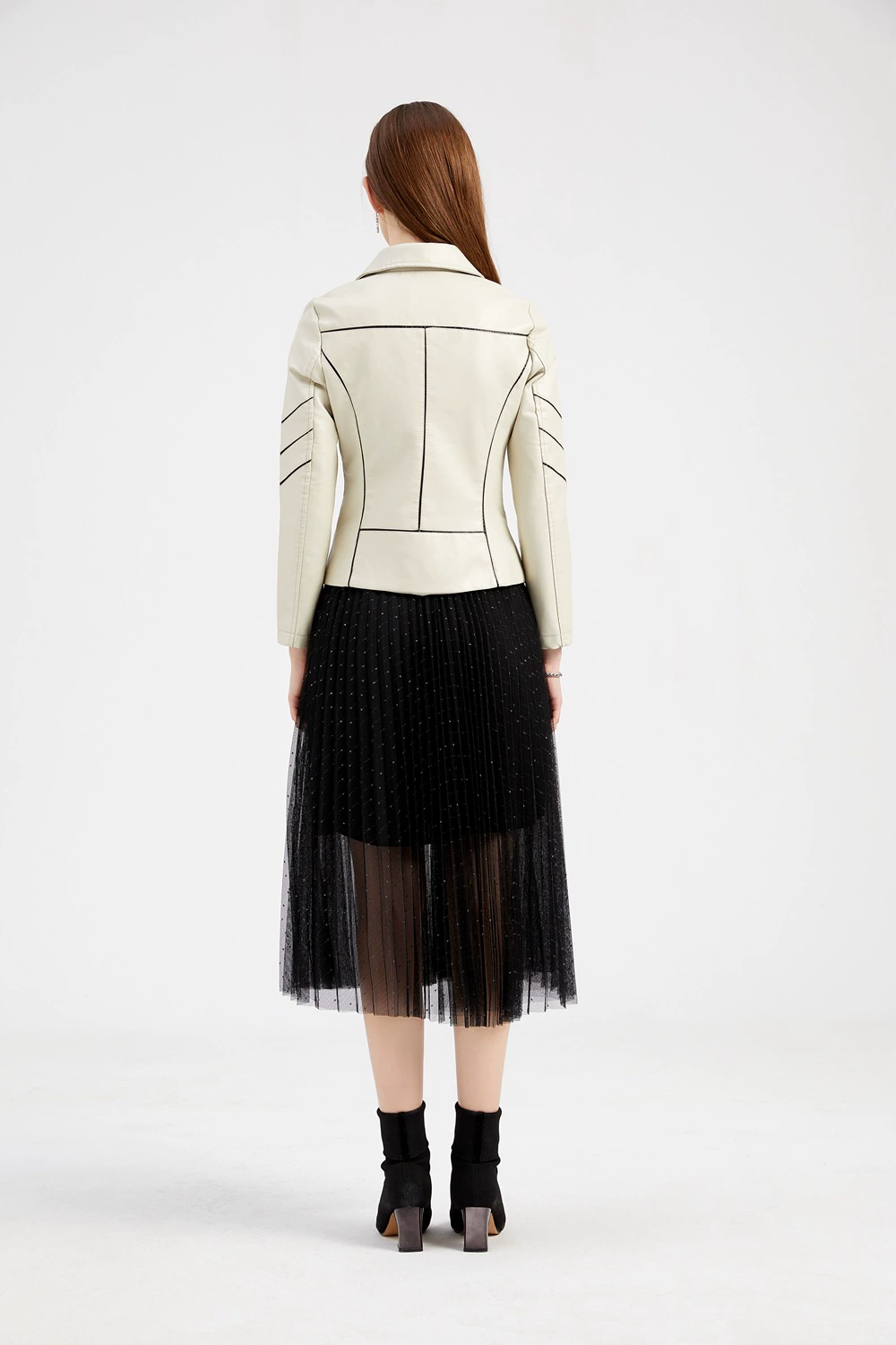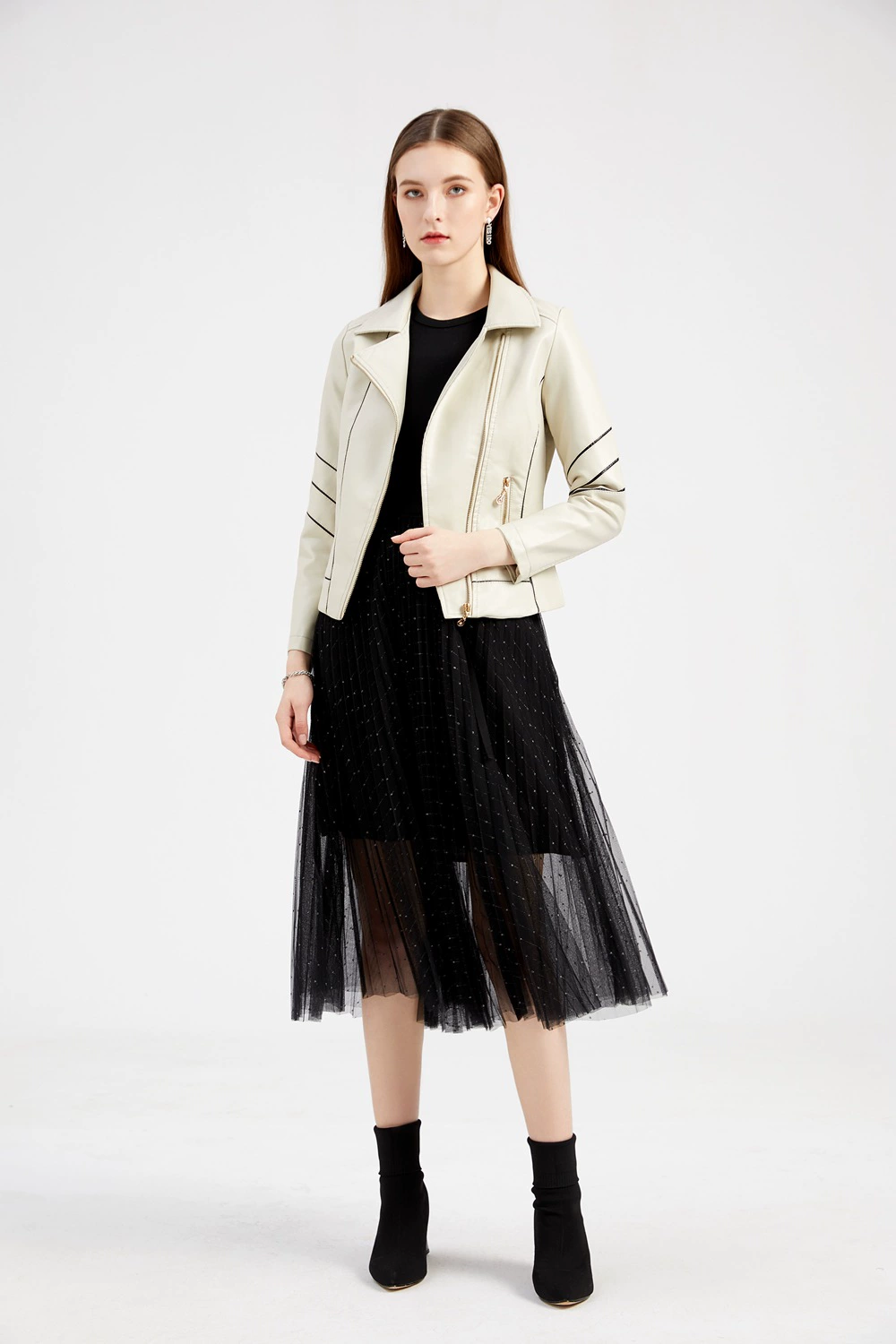 Куртка женская кожаная с отложным воротником, элегантная Байкерская...