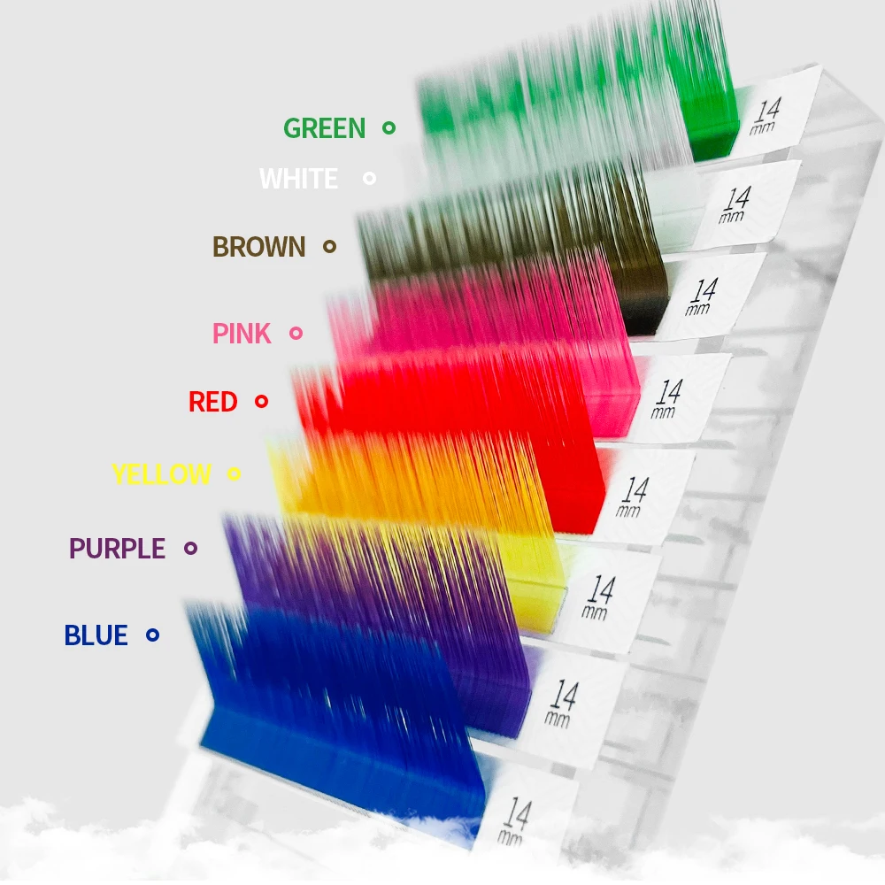 Название: наращивание цветных ресницCurl:C/D/L/LUТолщина: 0,07, 0,10Длина: 8 мм-14 ммЕмкость: 12 рядов.Цвет: красный, желтый, зеленый, розовый, фиолетовый, синий, белый, коричневый.