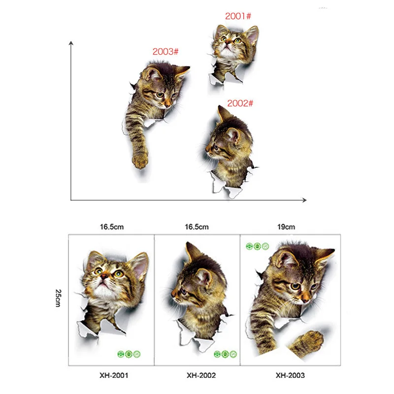 2020 новые 3D сломанные стены котенок наклейки на стену Туалет накл...