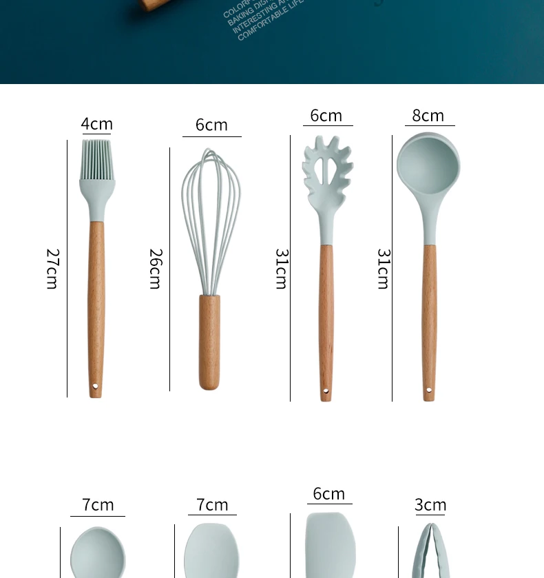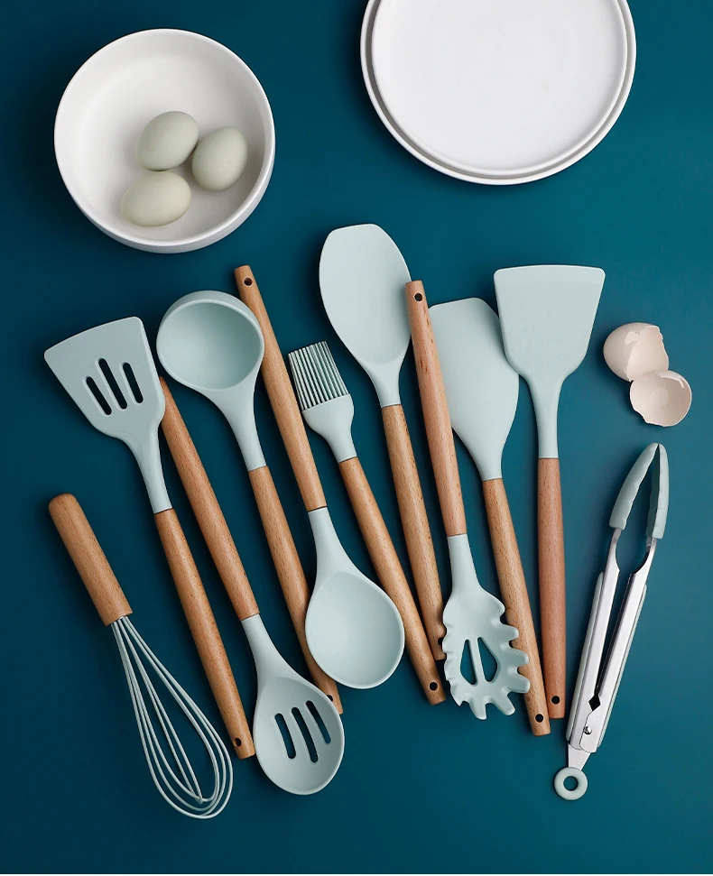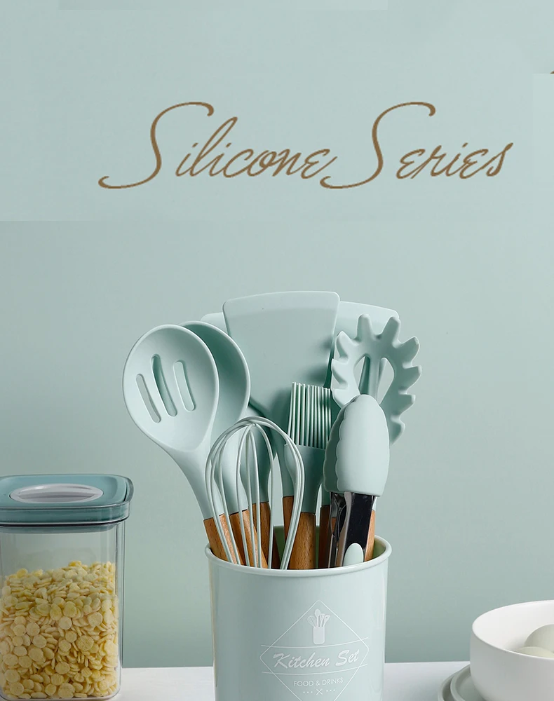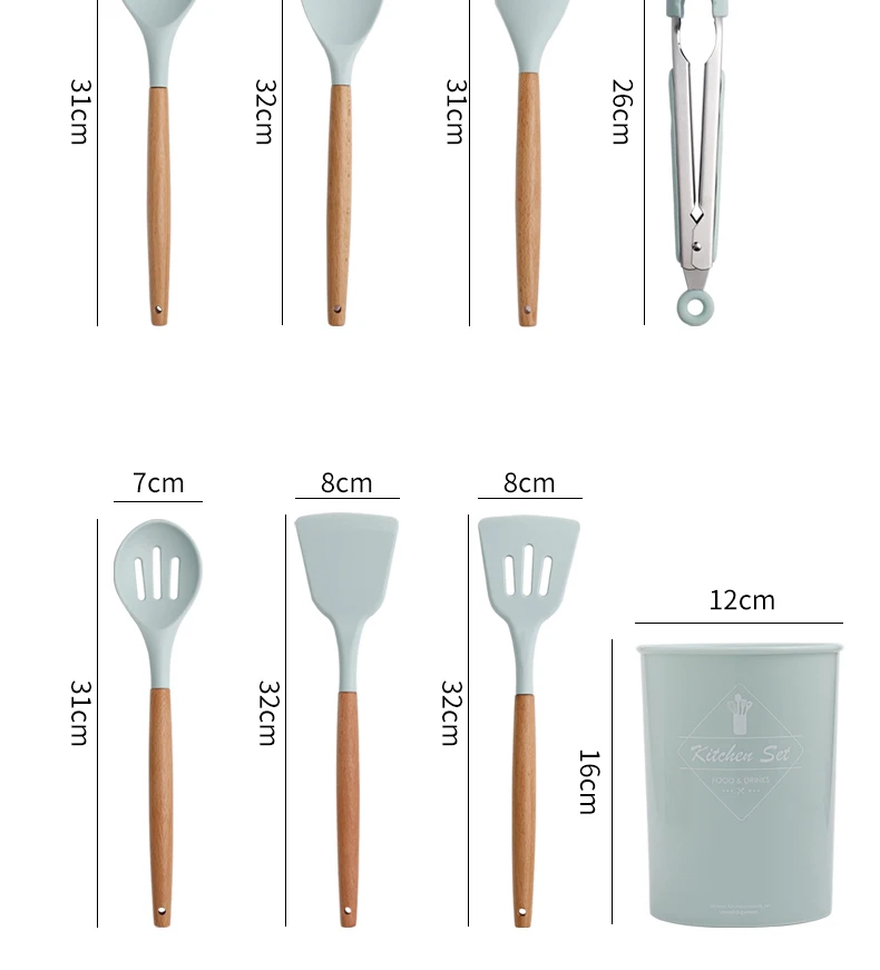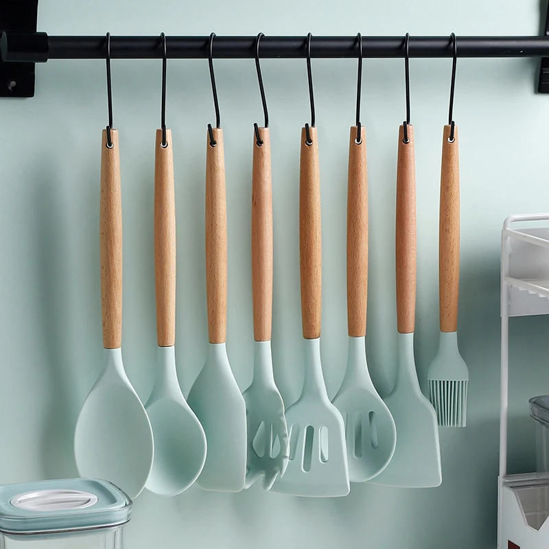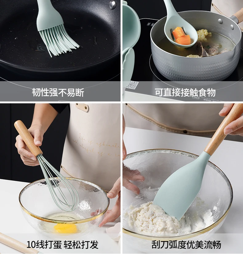 Еда Класс силиконовый Кухонные принадлежности домашние деревянные ручки из бука Пособия по кулинарии посуда с антипригарным покрытием для силикагель Пособия по кулинарии инструменты