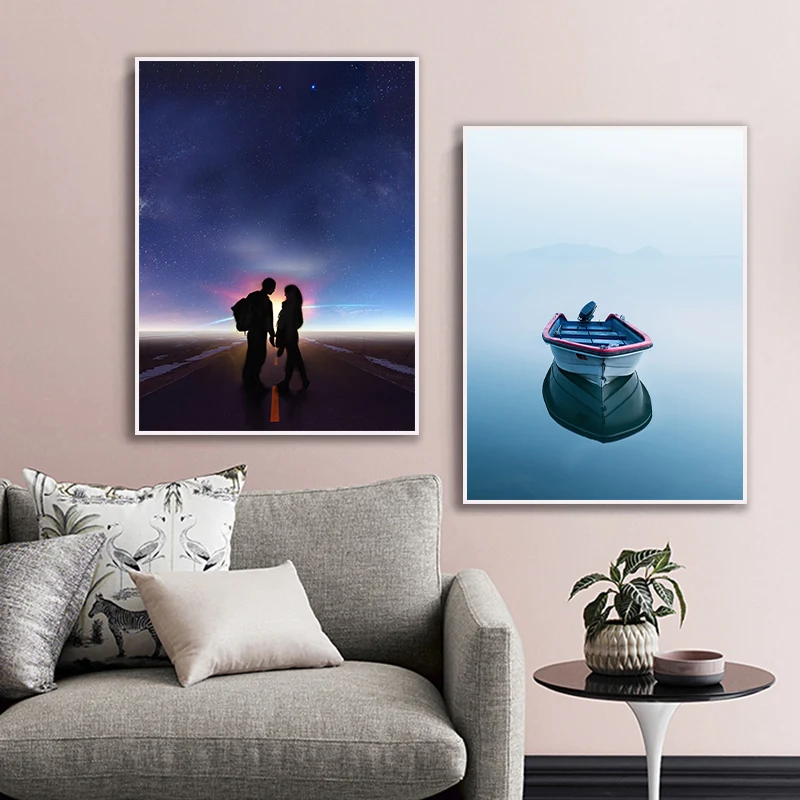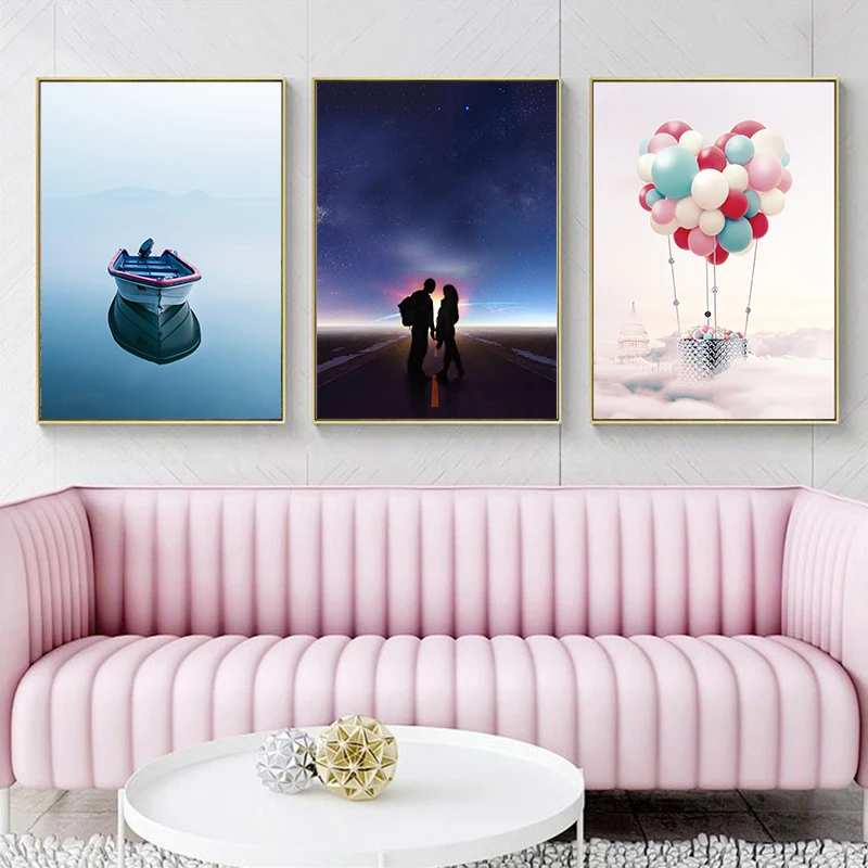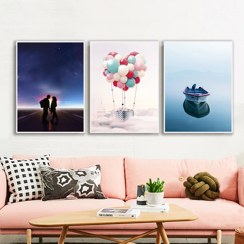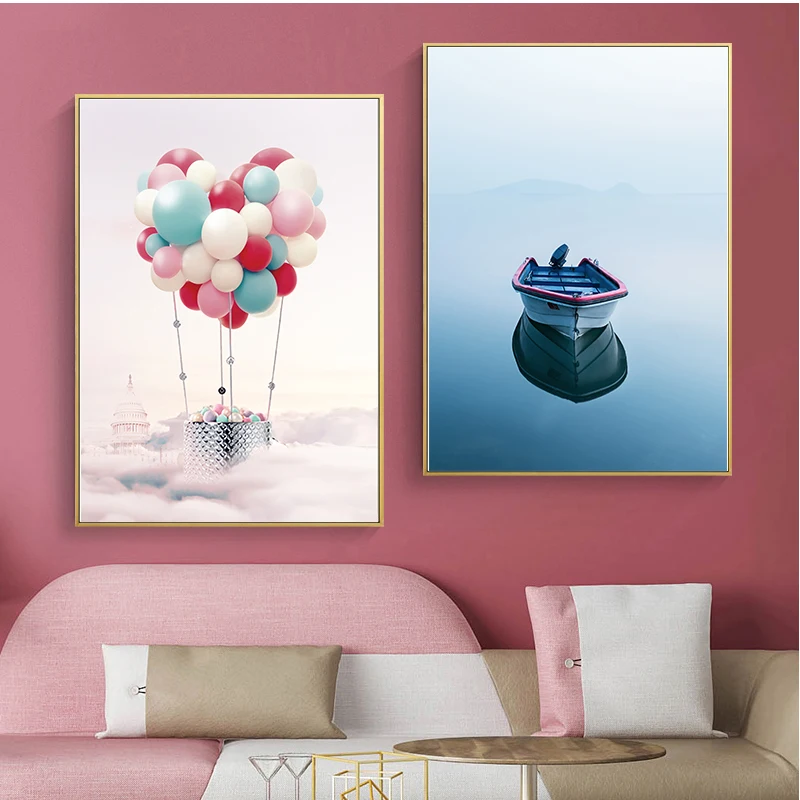 Розовый Nordic Романтический Святого Валентина фоны плакат "лодка" картины на холсте печатает Живопись Домашний Декор фотографии для Гостиная Спальня