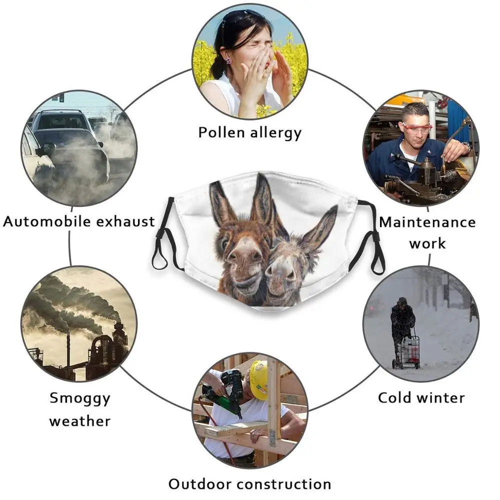 Моющаяся маска для рта с принтом Donkeys - Hee Haw, маска для защиты от пыли, маска для рта с принтом Ослика, милая маска для масел и лошадей