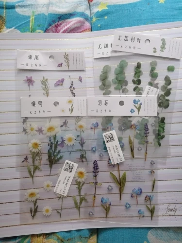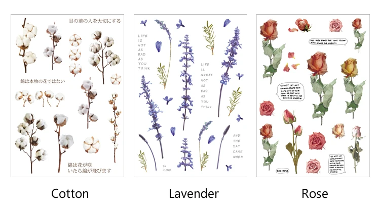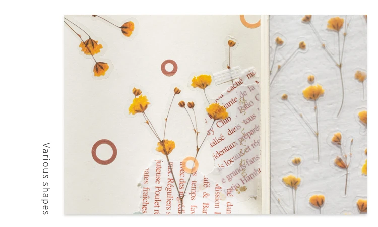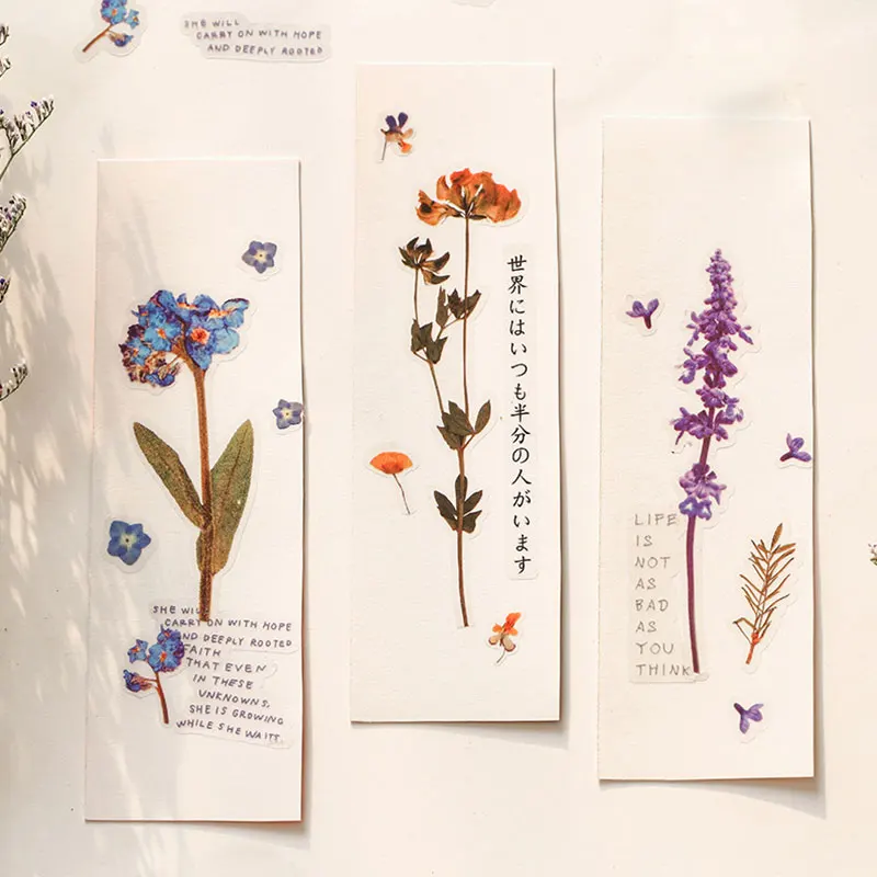 Один лист 12 видов конструкций натуральный Маргаритка Клевер японский наклейки со словами прозрачный ПЭТ Материал Цветы Листья декор из растений наклейки
