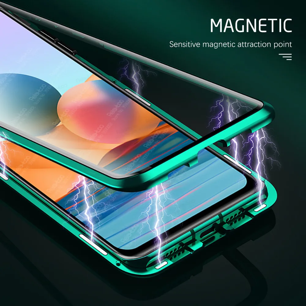 Магнитный флип-чехол на 360 для Xiaomi Redmi Note 10 Pro Note10 4G 10Pro 10s, двухсторонний металлический бампер с адсорбцией стекла, оболочка