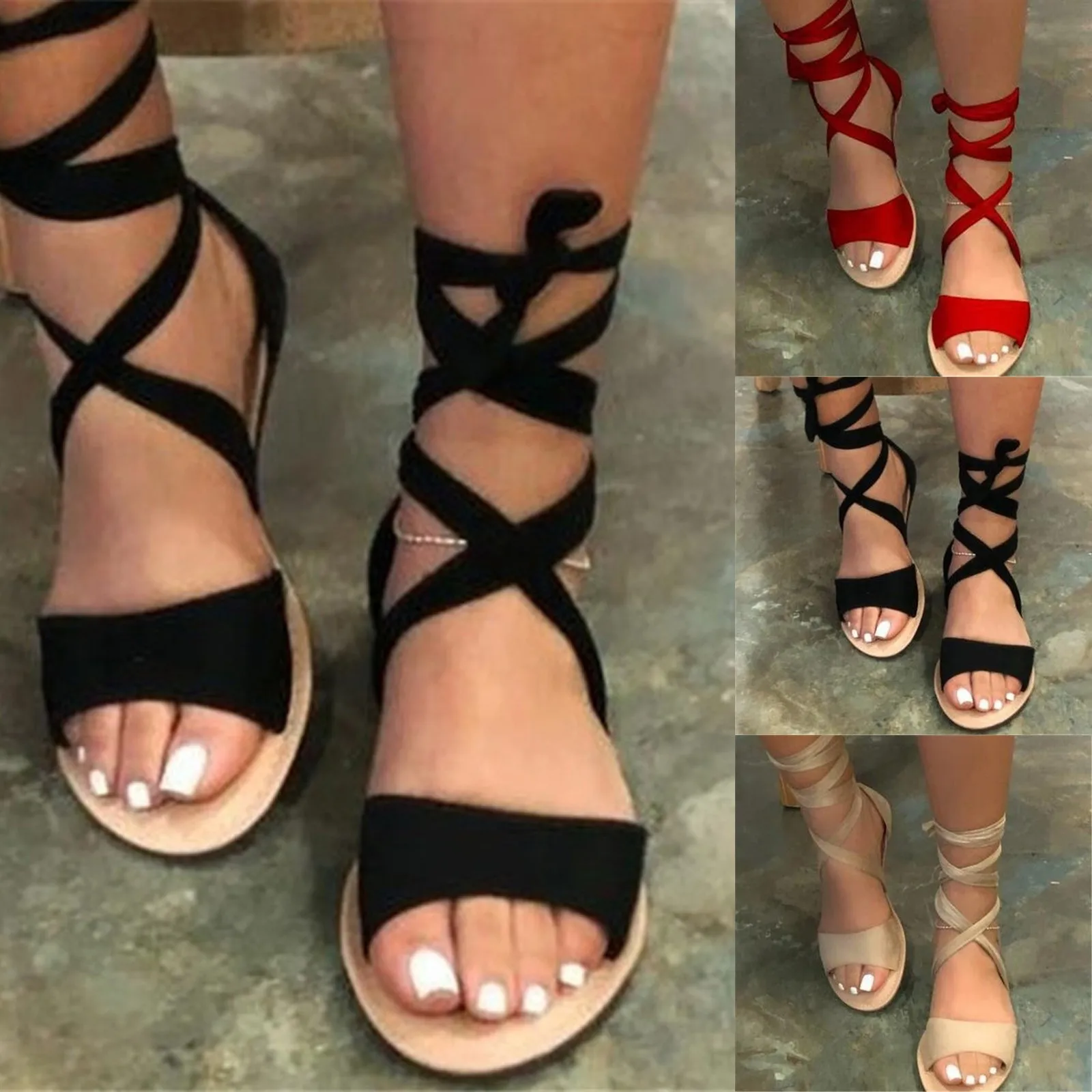 Сандалии JAYCOSIN женские до колена, плоская пеньковая веревка, плоская подошва, римские сандалии, большие размеры