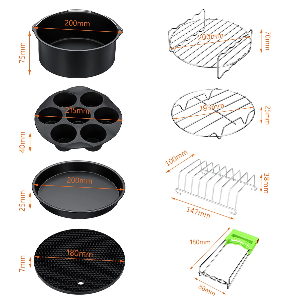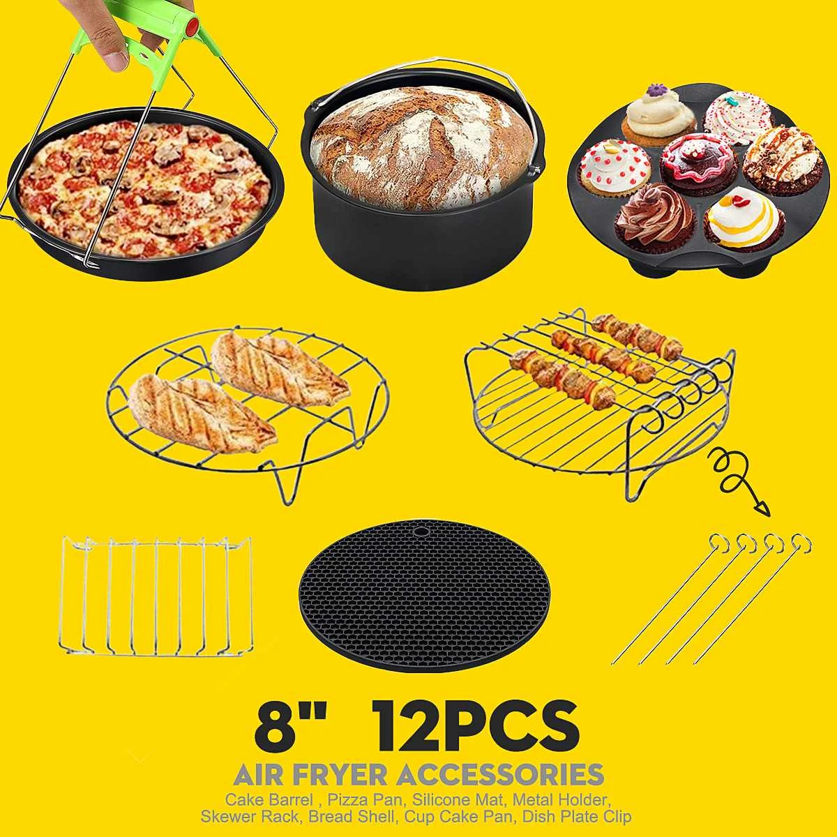 12 шт., аксессуары для фритюрницы, 8 дюймов, подходит для фритюрницы 5,2-кг, корзина для выпечки, тарелка для пиццы, гриль, горшок, кухонный инструмент для готовки Вечерние