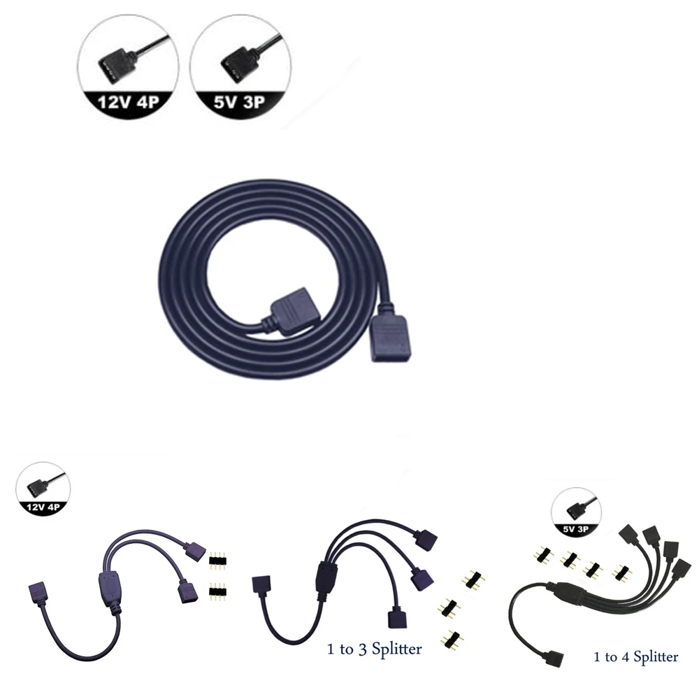 Разветвитель-соединитель ARGB, 5 В, 3 контакта, 12 В, 4 контакта, от 1 до 234, Удлинительный кабель для ПК, вентилятора, материнской платы AURA RGB светодиодный светодиодные ленты