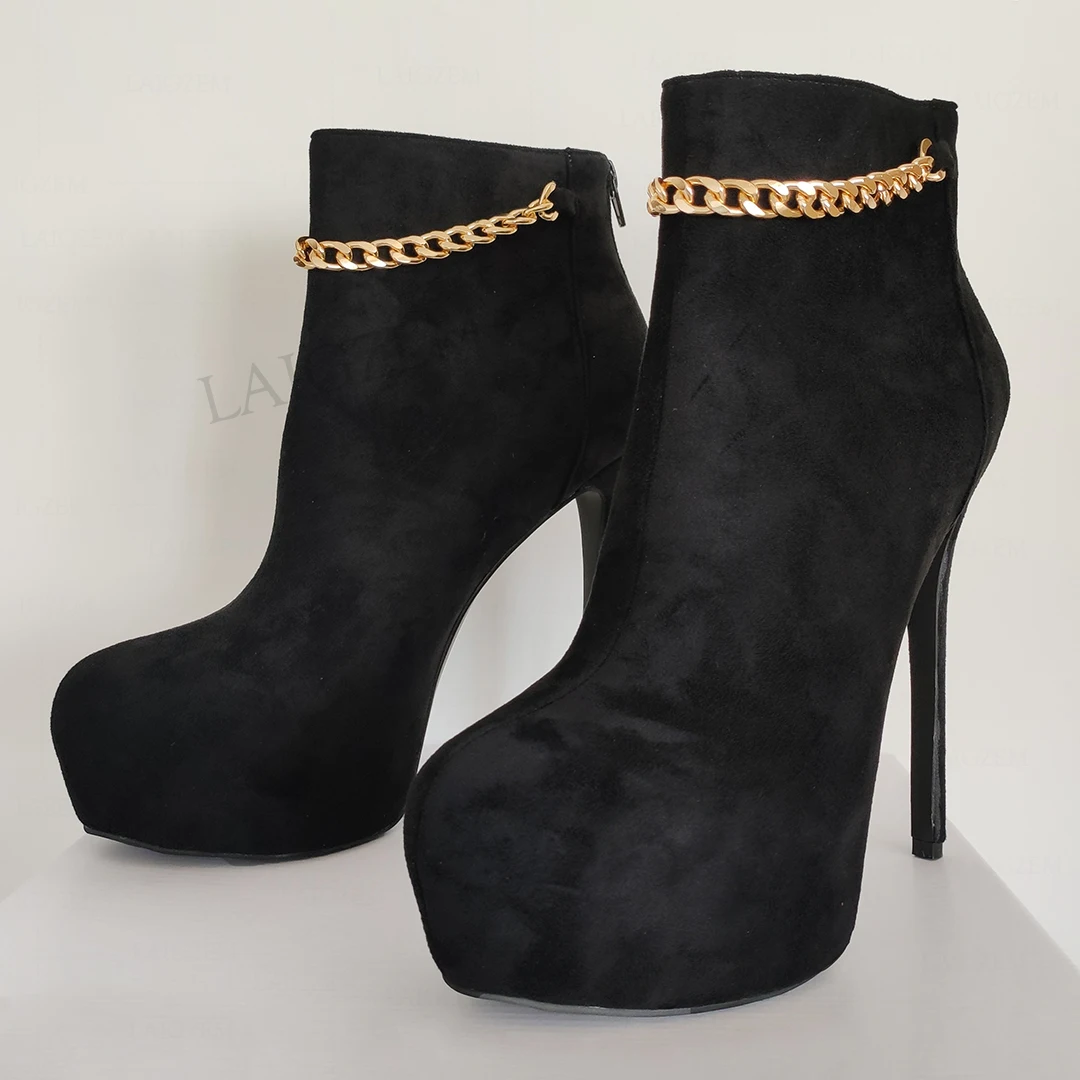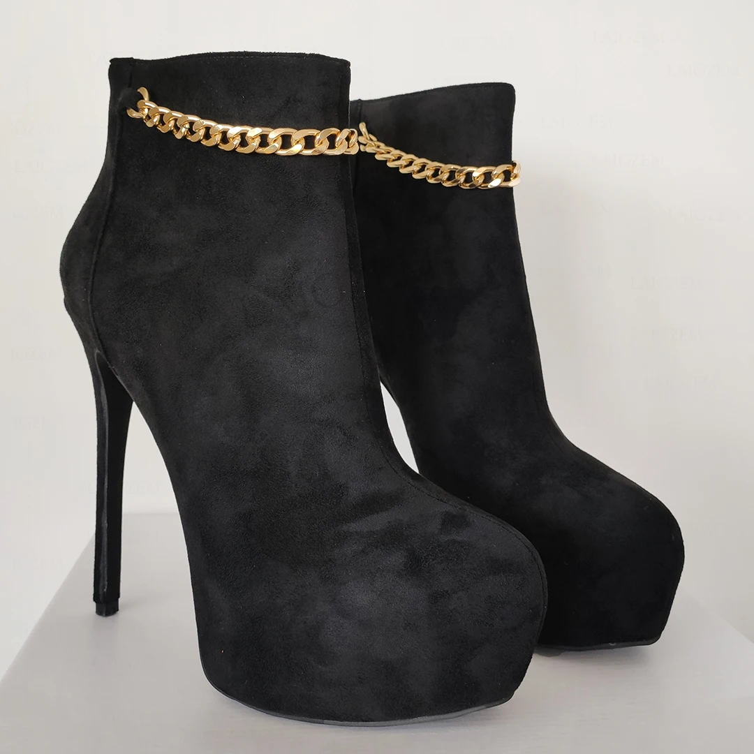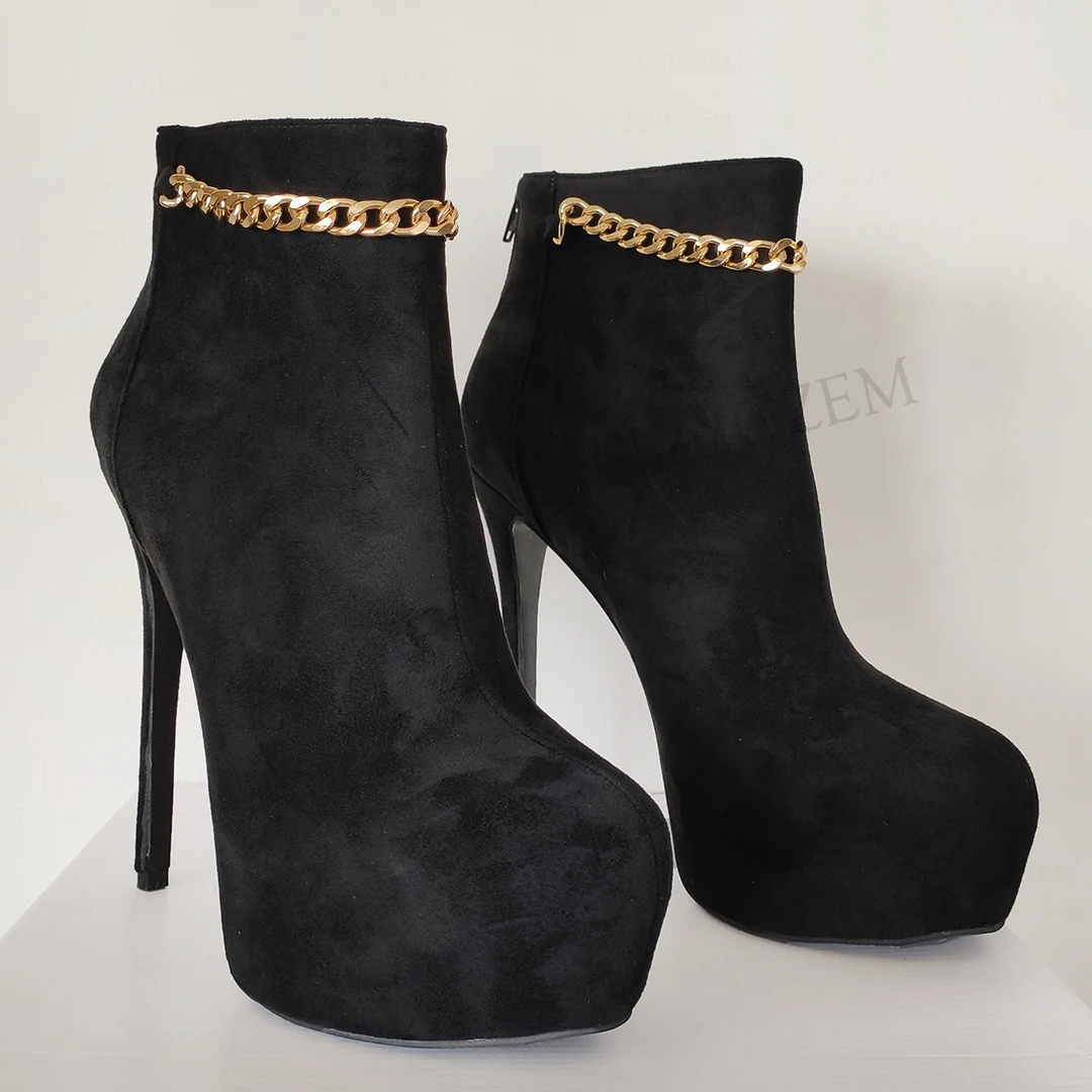 Женские ботильоны на платформе из искусственной замши, на молнии сзади, с цепочкой, на высоком каблуке, большие размеры 41, 42, 45, 52
