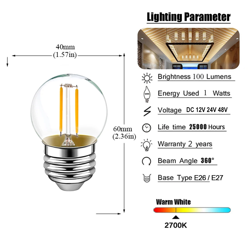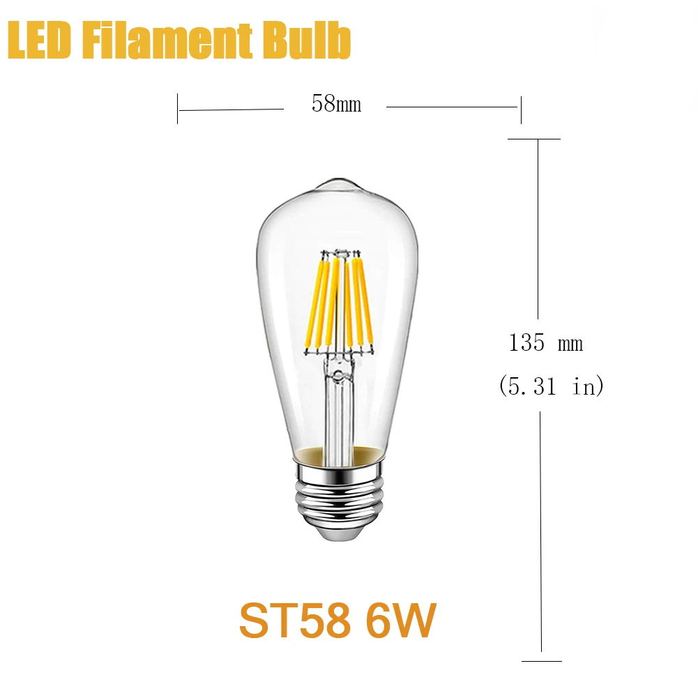 Светодиодсветильник лампа накаливания низкого напряжения E12 E14, Светодиодная лампа 12 В, 24 В, T22, G40, A19, ST58, 6 Вт, светодиодная лампа 2700K, освесветильник для локомотива