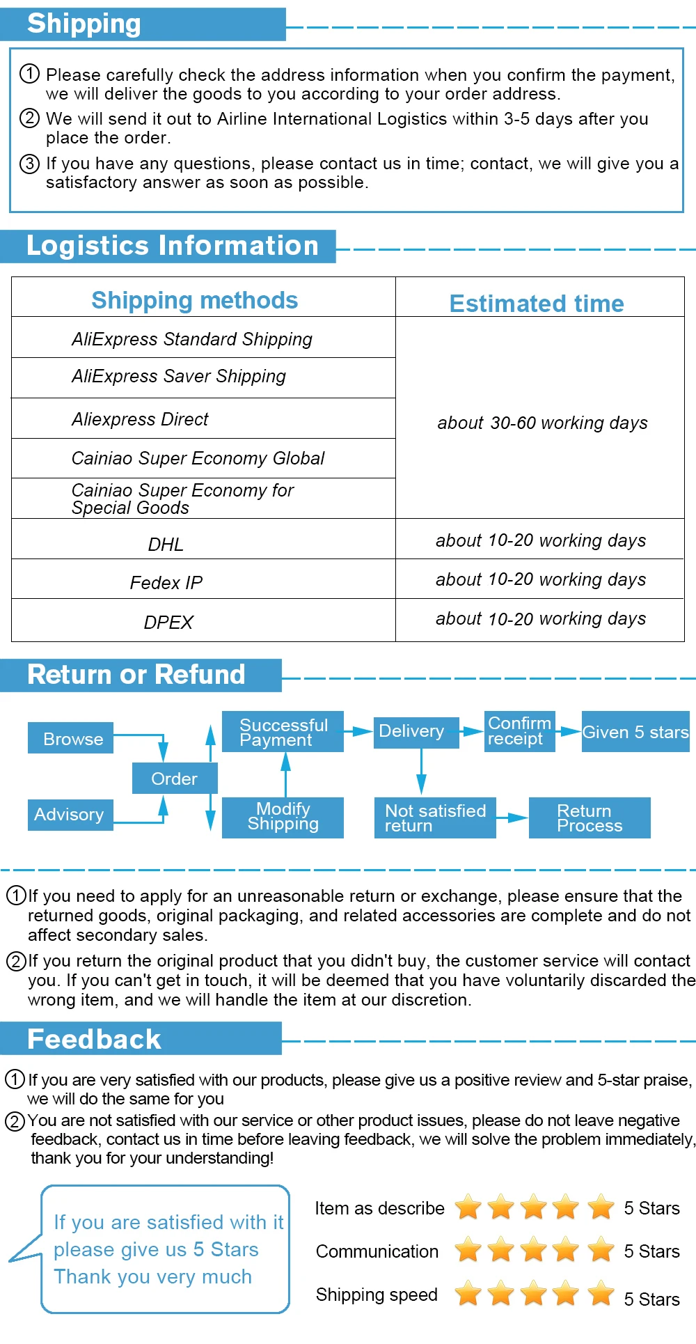 1. Информация о подтверждении перед оплатой, пожалуйста, тщательно подтвердите информацию о заказе и оплатите после того, как информация верна.2. Из-за различий в цвете, контрастности и яркости дисплеев, таких как компьютеры и мобильные телефоны, неизбежно будут различия между изображениями, которые вы видите, и реальными объектами.3. Из-за ручного измерения допускается отклонение в 1-3 см.