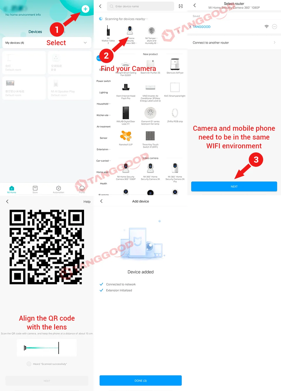 Шаг 1: Загрузите приложение Mi Home, а затем зарегистрируйте учетную запись для вас или Войдите в системуШаг 2: перейдите в настройки приложения mi home, затем измените регион на Китай, переключитесь на язык, который вы предпочитаете, и перезагрузите приложениеШаг 3: Добавьте эту камеру в приложение, она поможет вам подключиться к Wi-Fi камеры, после того как Вернитесь в приложение и заполните имя и пароль Wifi