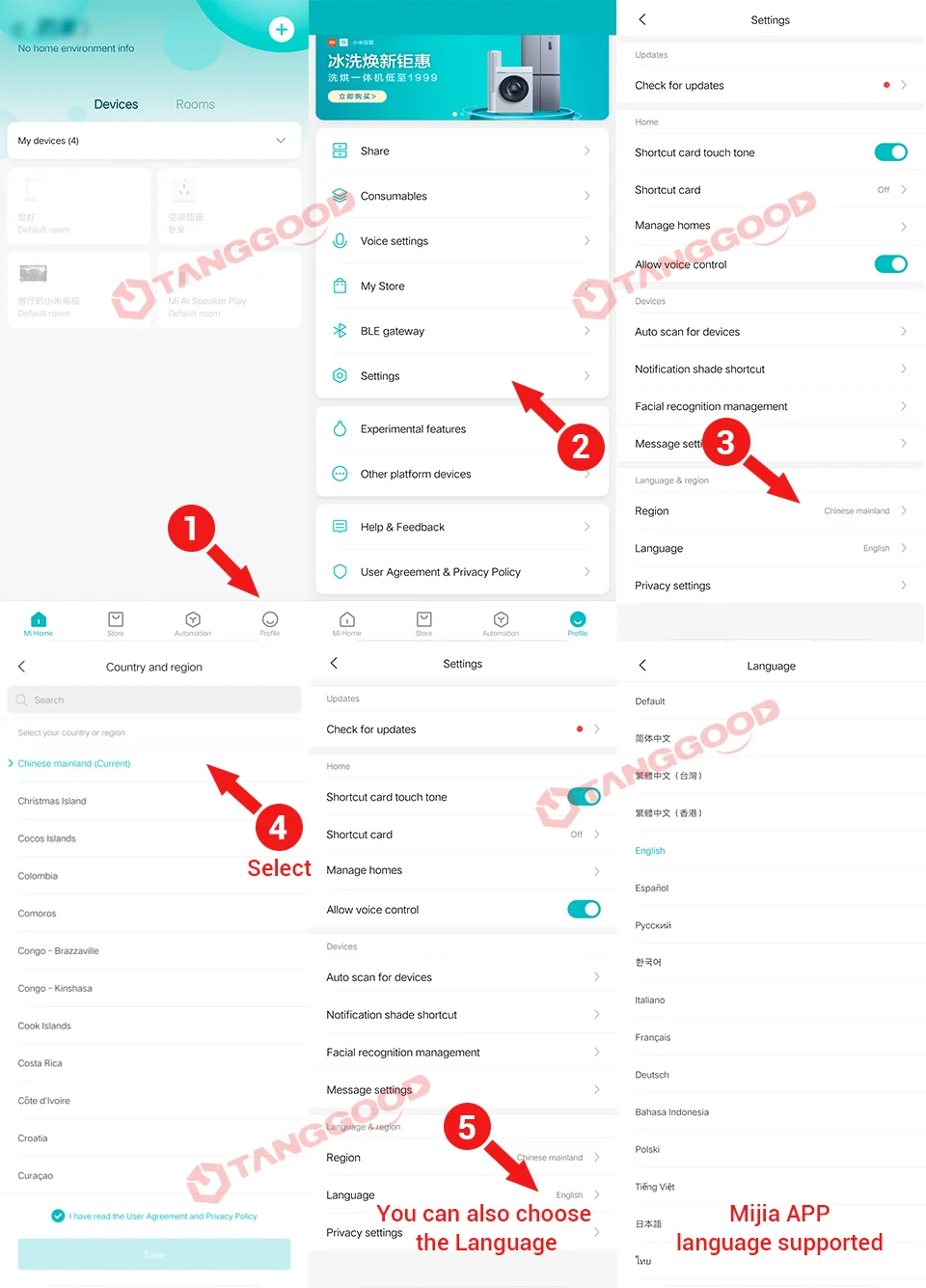Прежде чем добавить камеру в приложение mi home, регион приложения mi home должен установить в Китай, установите предпочтительный язык одновременно.Если у вас есть другие устройства mi, установленные в другом регионе, вы обнаружите, что они исчезают, когда вы находитесь в Китае, но если вы переключитесь в нужный регион, они будут еще там.