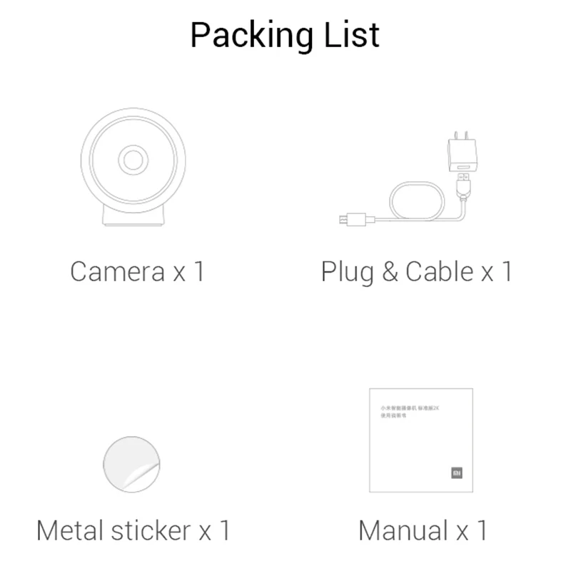 Название продукта: Xiaomi Smart Camera Standard Edition 2KМодель продукта: MJSXJO3HLНоминальное входное напряжение: 5V / 1AКодирование видео: H.265Рабочая температура: -10 ℃ ~ 50 ℃Размер изделия: 60,0 × 48,0 × 67,5 ммРазрешение: 2304 × 1296Угол Линзы: 125 °Беспроводной подключение: Wi-Fi lEEE 802.11blg/n 2,4 ГГцСпособ хранения: карта MicroSDСистема поддержки: Android4.4 или iOS9.0 и выше версии реализуют стандарты GB 8898-2011, GB 17625,1-2012, GB/T 13837-2012