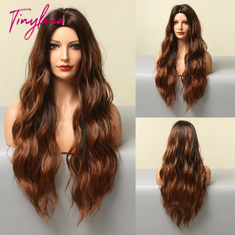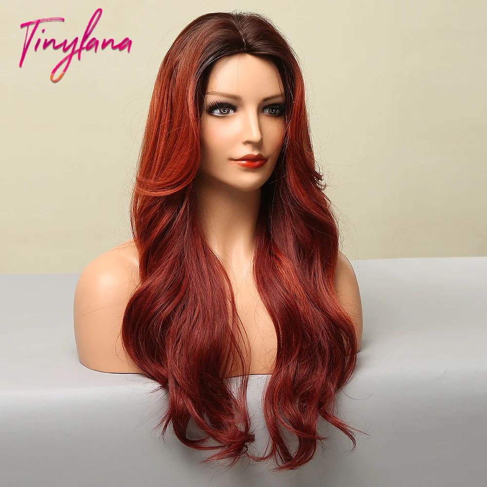 Крошечный LANA длинные волнистые синтетические парики средняя часть Омбре красные коричневые парики для черно-белых женщин Косплей вечерние термостойкие волокна