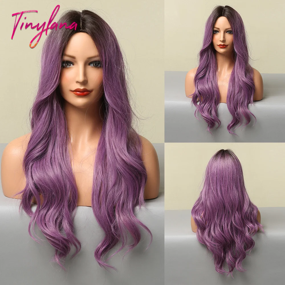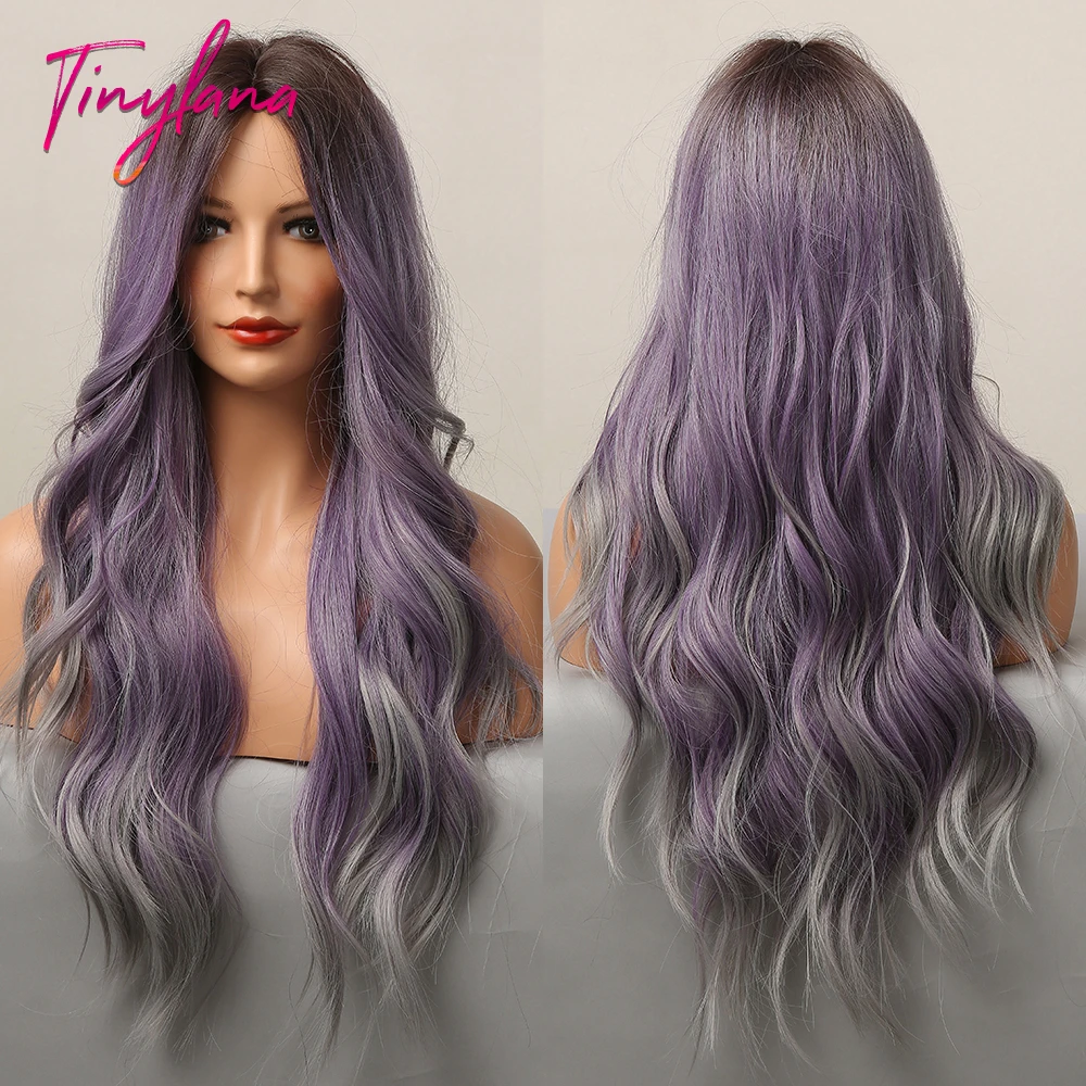 Искусственные парики для женщин, длинные волнистые, фиолетовые, с э...