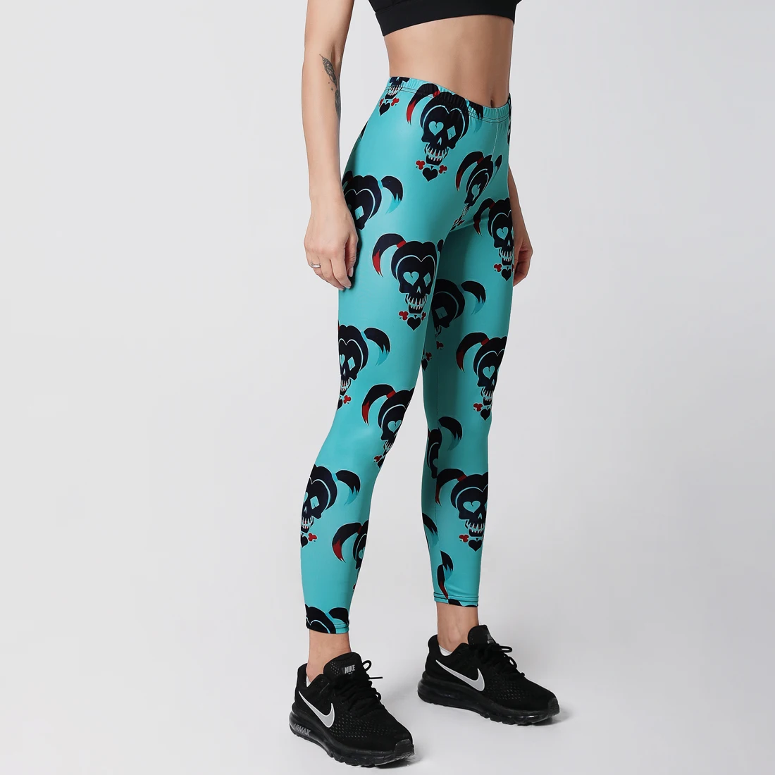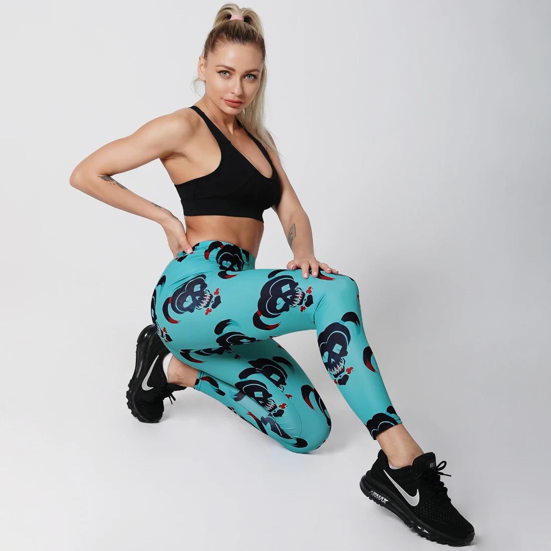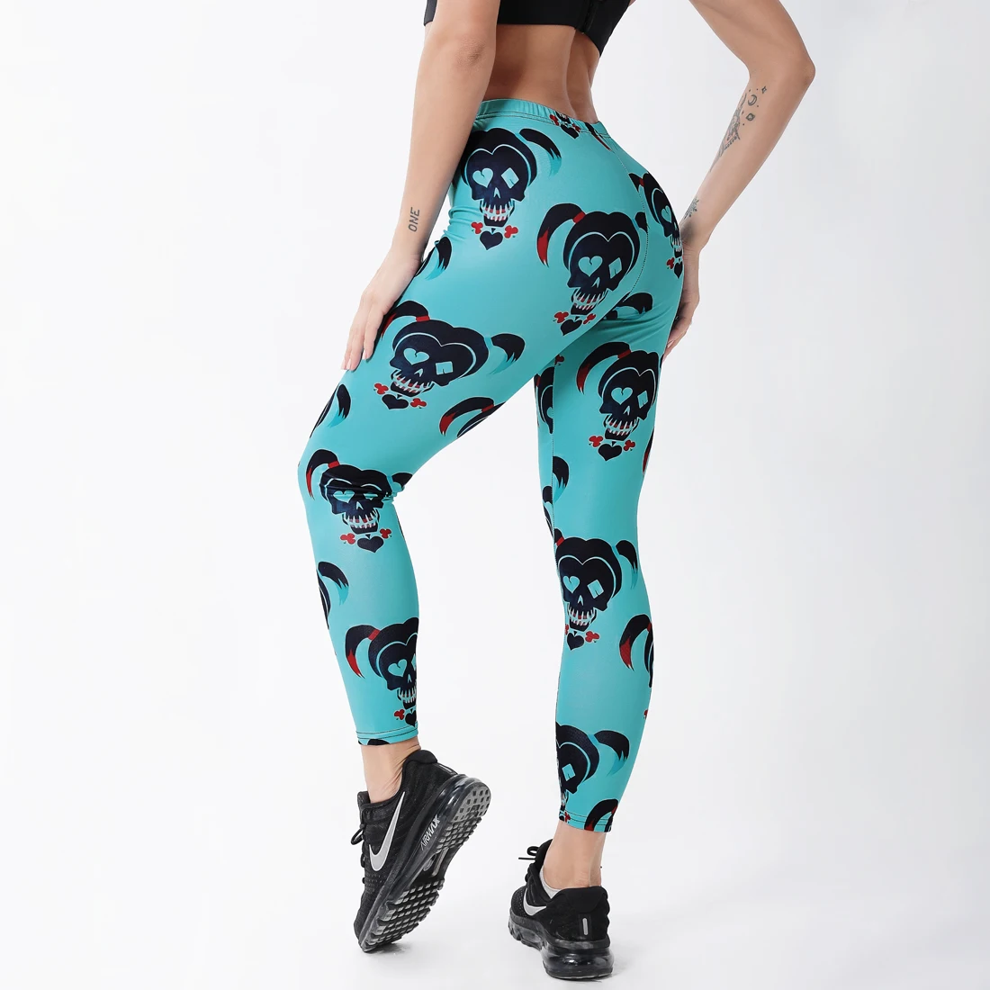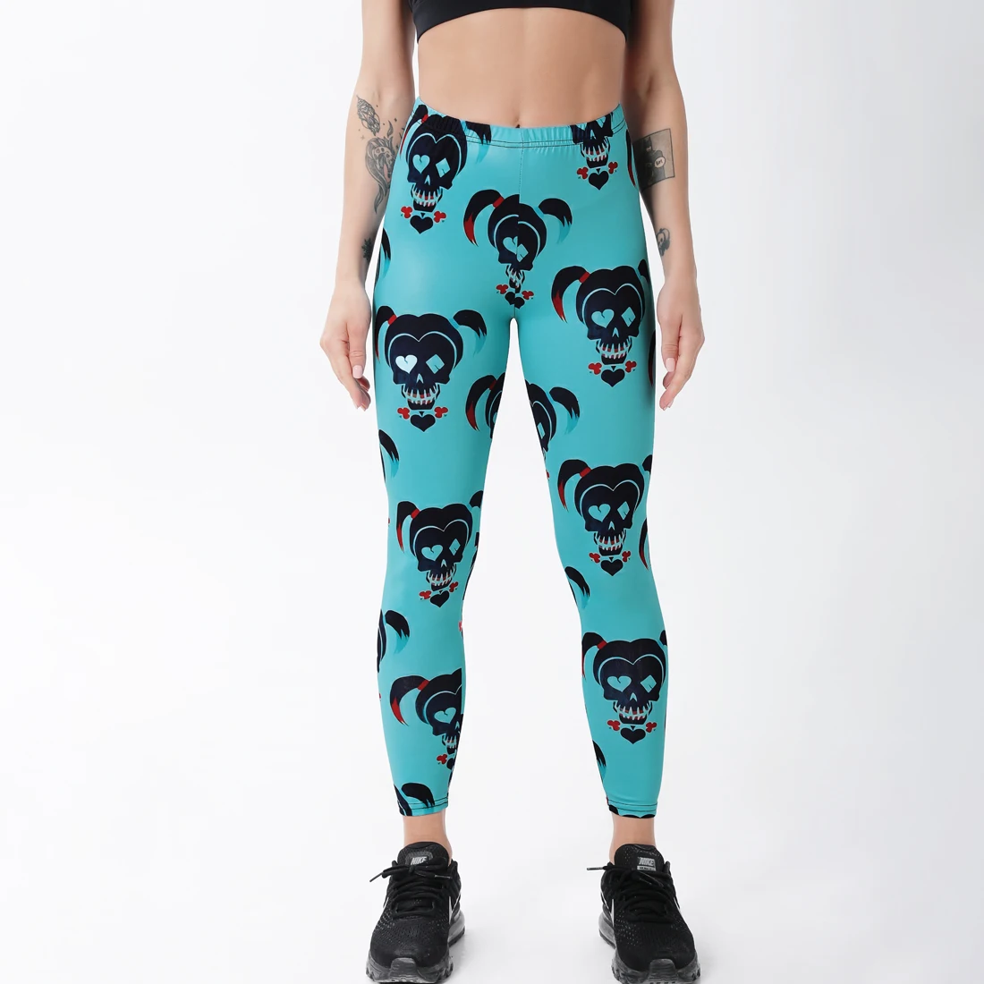 Новое поступление, женские Синие леггинсы с принтом клоуна для тренировок и бега, спортивные Леггинсы, женские Стрейчевые брюки для фитнеса