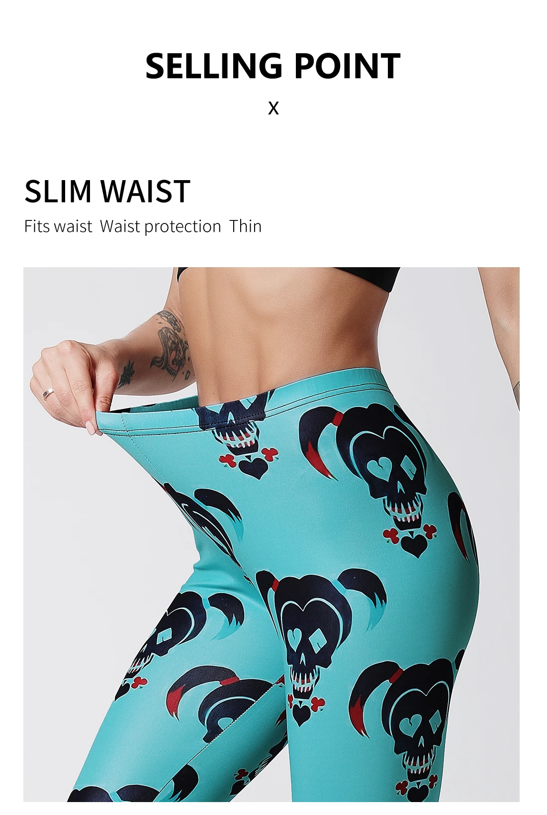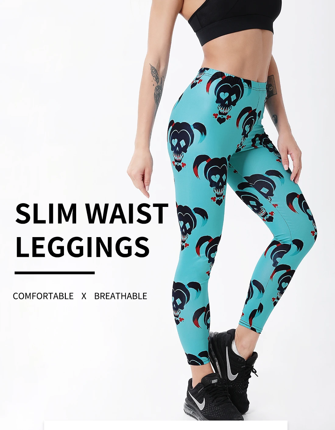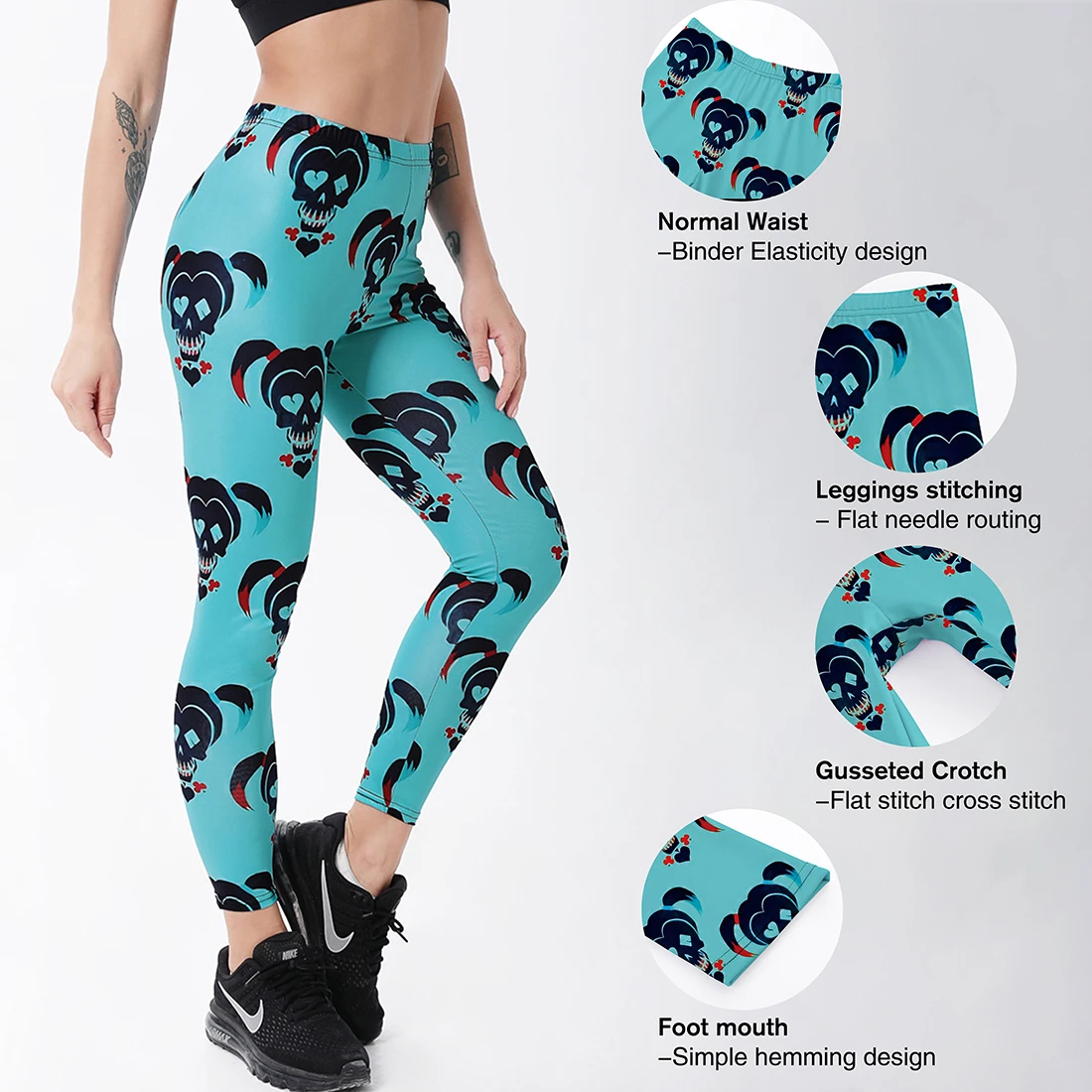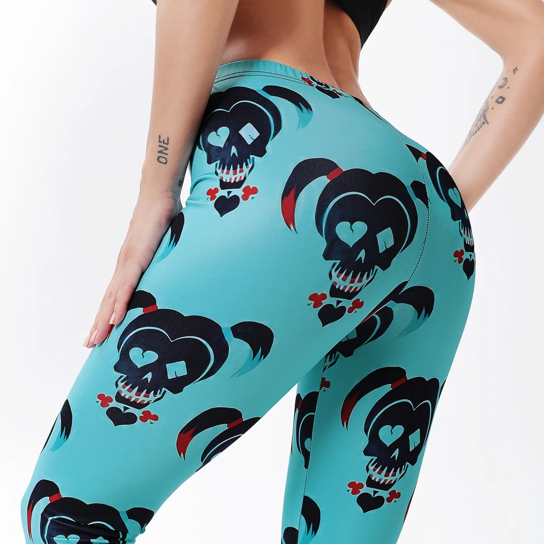 Новое поступление, женские Синие леггинсы с принтом клоуна для тренировок и бега, спортивные Леггинсы, женские Стрейчевые брюки для фитнеса