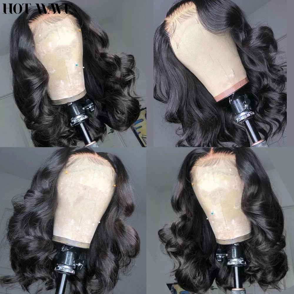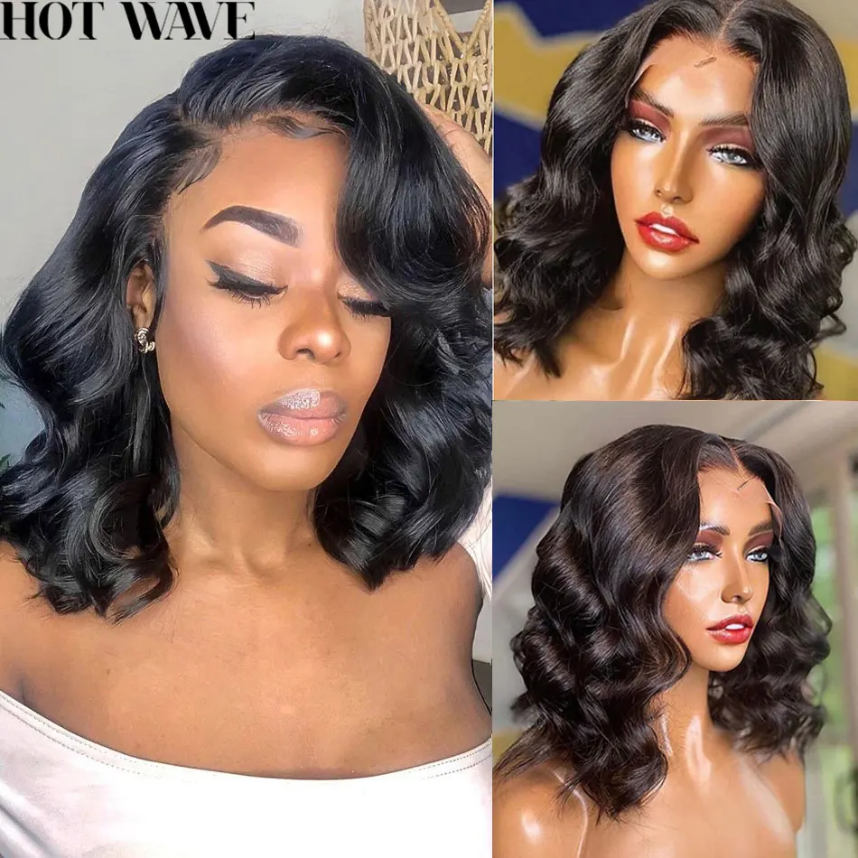 Короткий парик боб, волнистые, прозрачные кружевные передние парики для женщин, парики из человеческих волос, предварительно выщипанные, 13x4, волнистые, кружевные передние парики, Hotwave