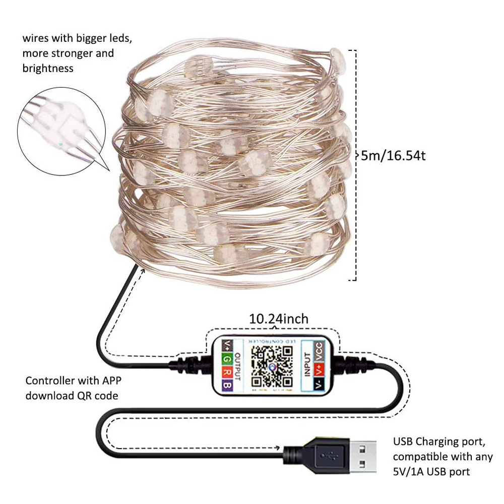 Смарт-приложение Bluetooth-совместимый таймер управления музыкой RGB Сказочный струнный светильник 5 м/10 м/20 м 50-200LED водонепроницаемый USB медный провод Светильник s