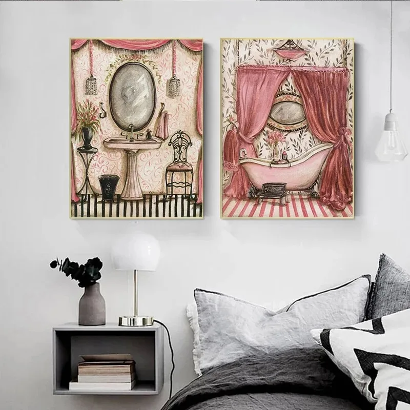 Винтажная потертая викторианская Ванна во французском стиле, холст с рисунком, Настенный декор для ванной, картины, постеры, эстетическая комната Dec