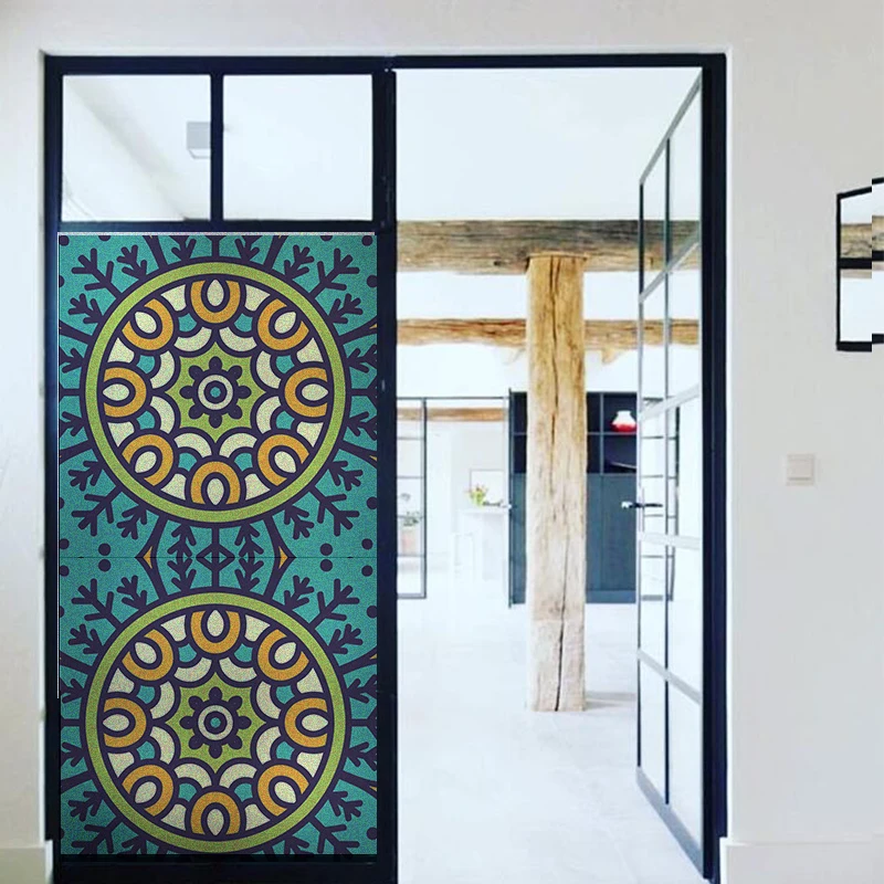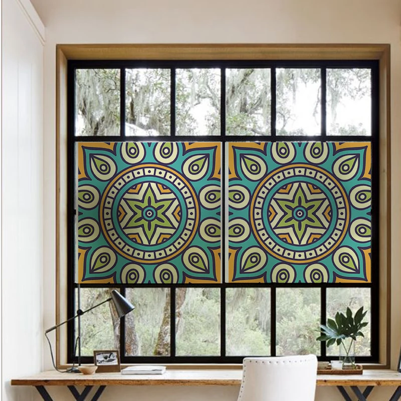 Без Клея Красочные Мандала оконная пленка матовый конфиденциальности стеклянная дверная наклейка домашний декор цифровая печать GS035
