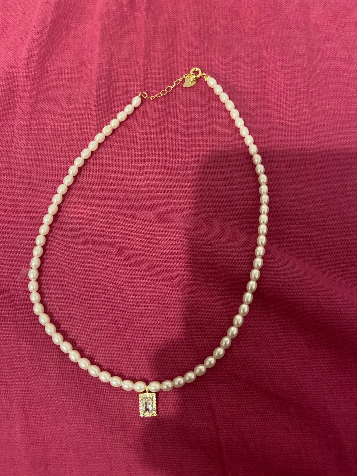 Выглядит как на картинке и очень красиво, но верхний ряд жемчужин сломался в первый день :( это нормально, потому что нижний ряд все еще там, и он все еще очень красивый! Я думаю, что он все еще стоит своей цены