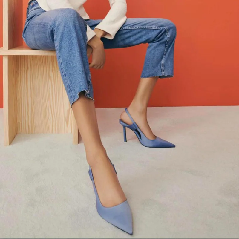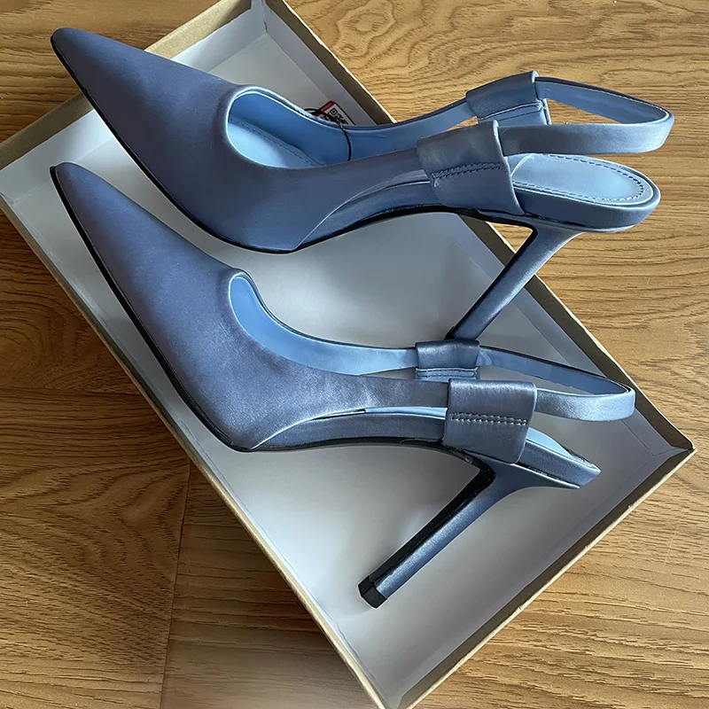 Весенние синие шелковые туфли-лодочки с острым носком Женская Классическая обувь на тонком высоком каблуке офисные женские туфли-лодочки 2021 новые женские туфли