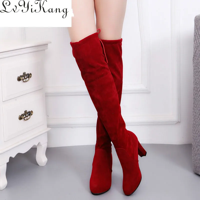Облегающие сапоги из искусственной замши, привлекательные Женские Сапоги выше колена для снега, женские модные зимние сапоги до бедра, женская обувь 025