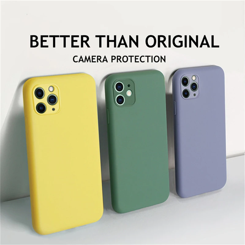 Чехол для iPhone 12, 11 Pro Max, 12 Mini, SE 2020, XS, XR, X, 7, 8, 6, 6s Plus, из жидкого силикона, с защитой камеры