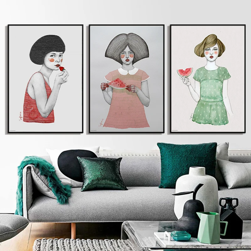 Винтажная абстрактная Модная девушка арбуз Художественная Картина на холсте модный скандинавский постер настенные картины для гостиной домашний декор