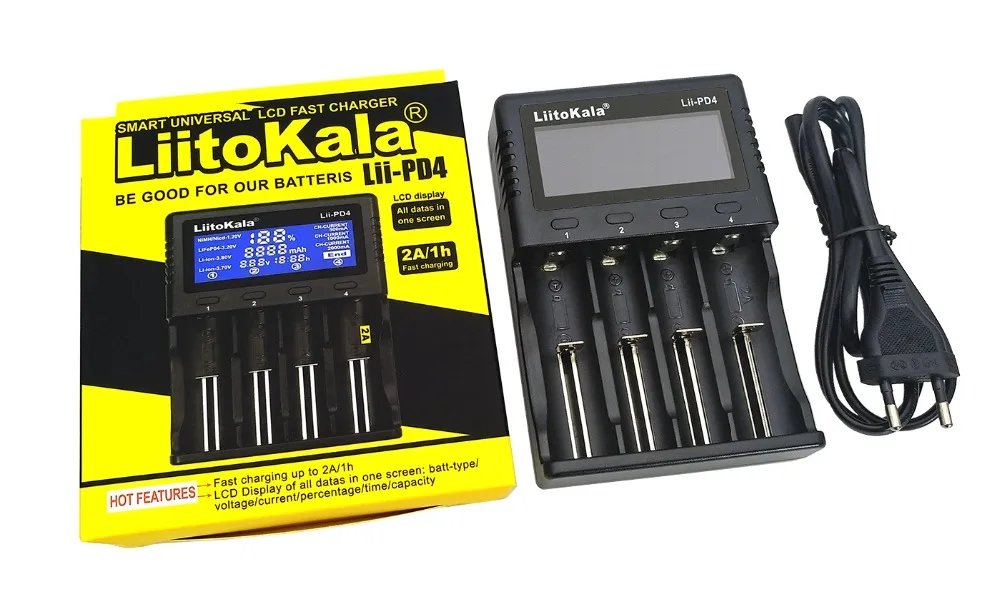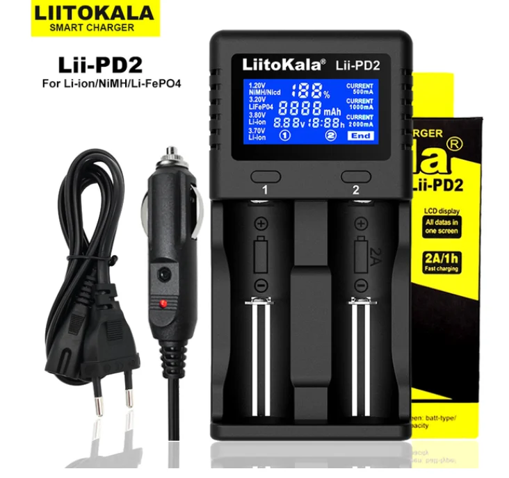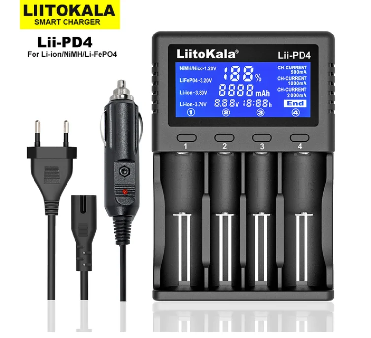 Зарядное устройство Liitokala Lii-PD4, PD2, 1,2В, 3,7В для литиевых, NiMh аккумуляторов 18650, 18350, 18500, 21700, 20700, 26650, ЖК-экран