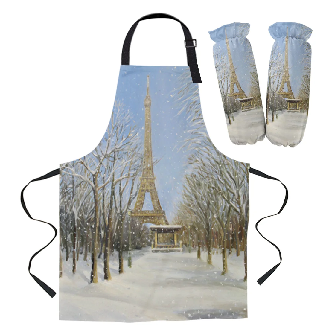 Париж Эйфелева башня деревья пейзажа фартук Кухня бытовой уборки передник парикмахерский фартук Пособия по кулинарии аксессуары женские фартуки