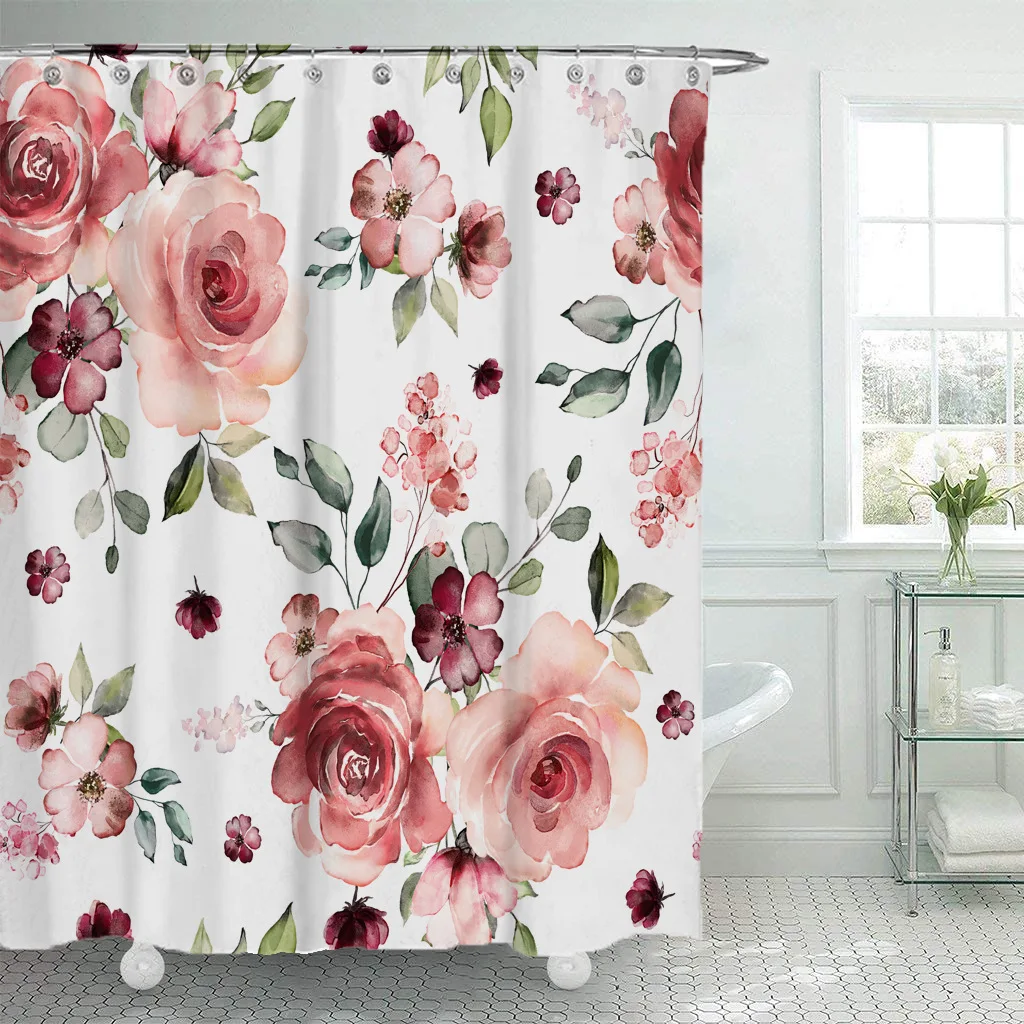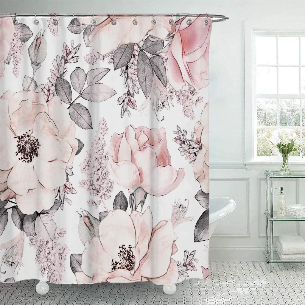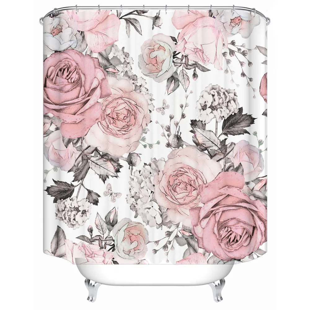 3D с цветочным принтом душ Шторы s ткань Водонепроницаемый занавеска для ванной из полиэфира Шторы для ванной комнаты с крючками кольца домашний декор