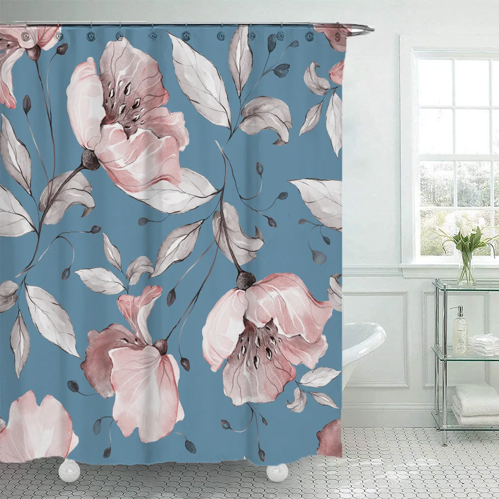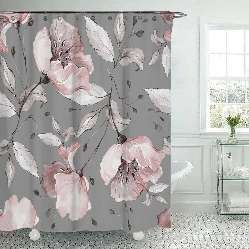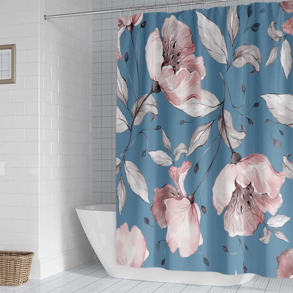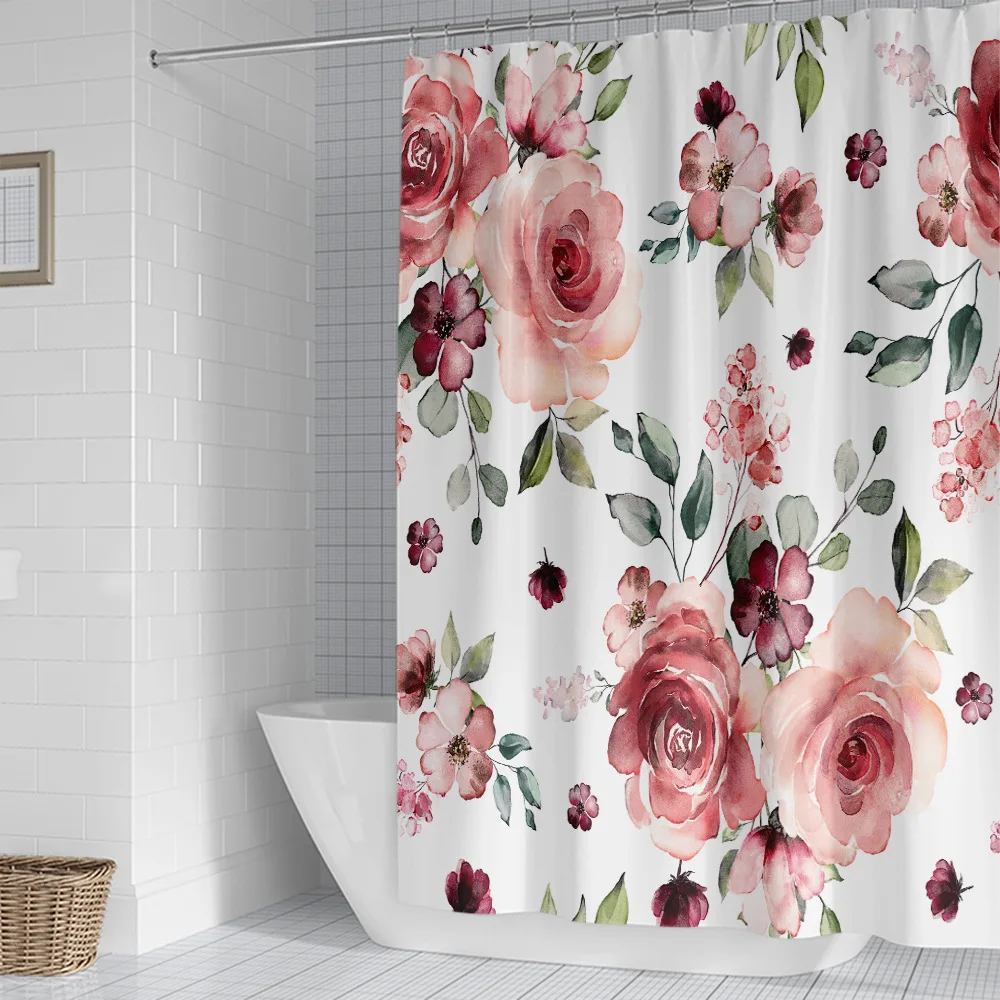 3D с цветочным принтом душ Шторы s ткань Водонепроницаемый занавеска для ванной из полиэфира Шторы для ванной комнаты с крючками кольца домашний декор