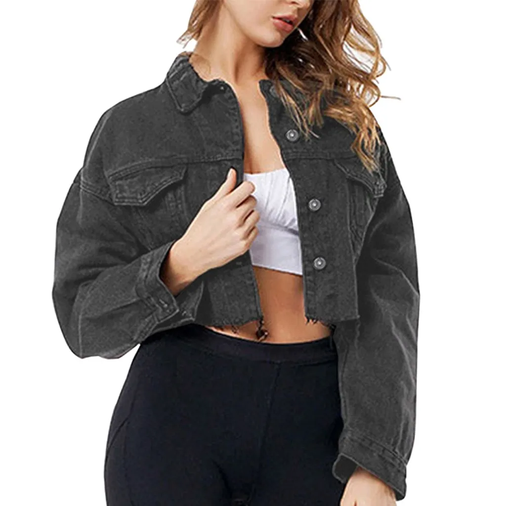 Куртка женская джинсовая короткая с длинным рукавом, модная верхняя...