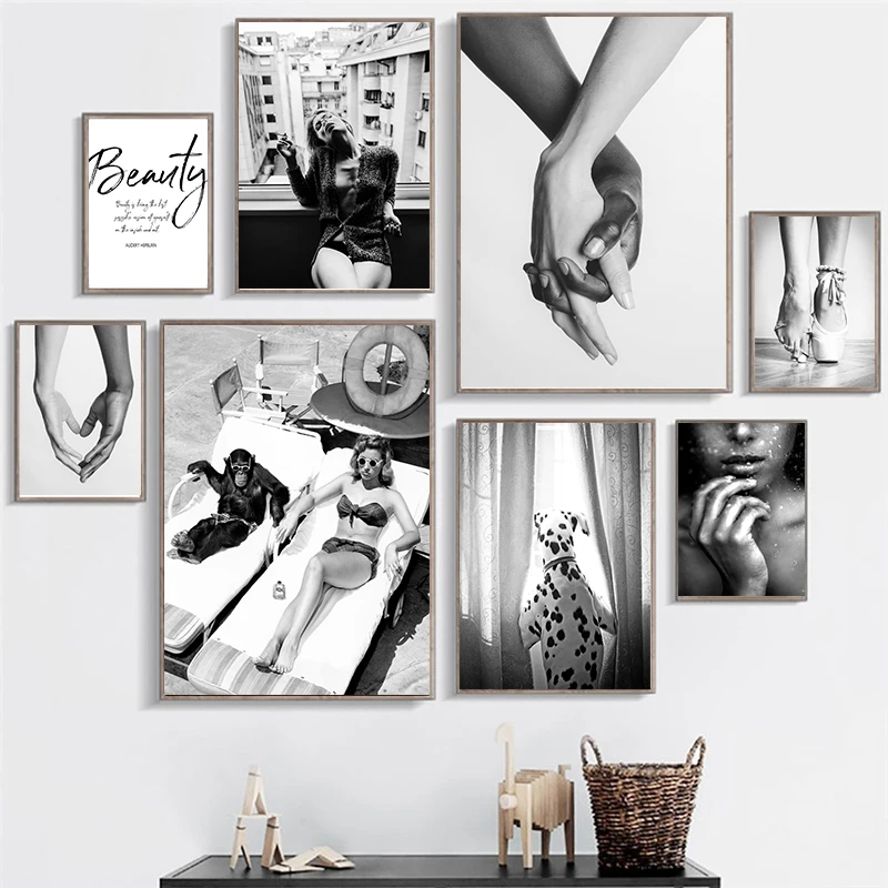 Картина черно-белая с изображением далматинца, холст с изображением девушки-монки, для гостиной