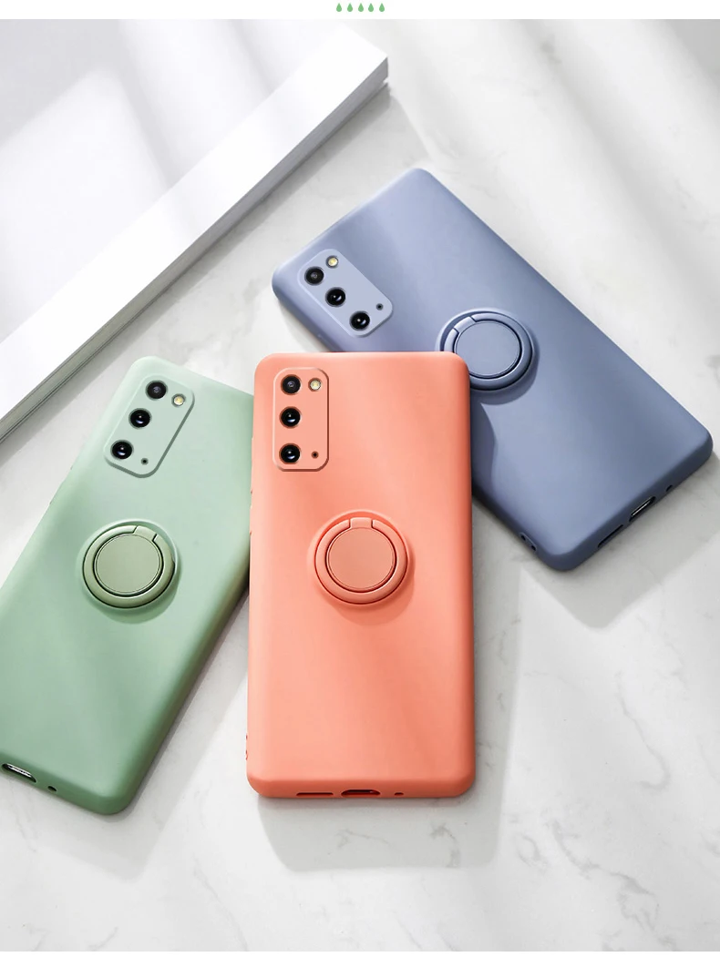 Жидкий силиконовый чехол с магнитным кольцом-держателем для телефон...