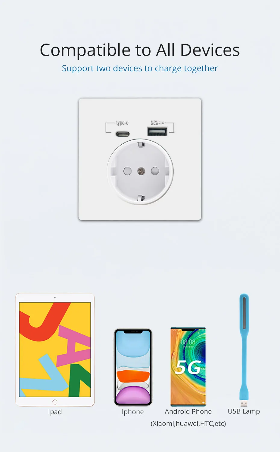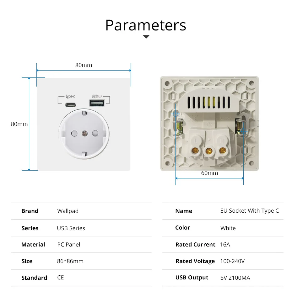 Сетевая розетка с USB-портом типа C, 5 В, 2100 мА